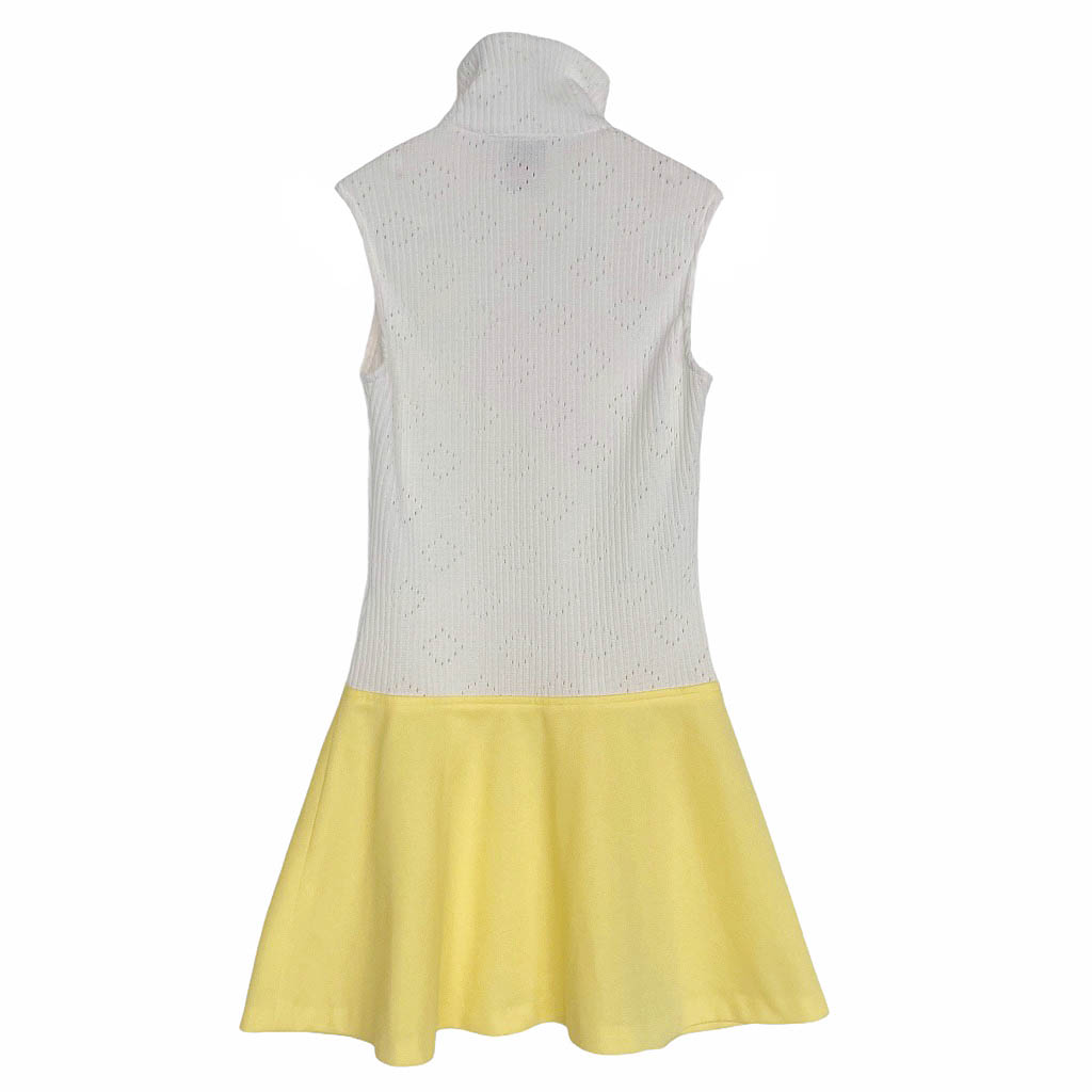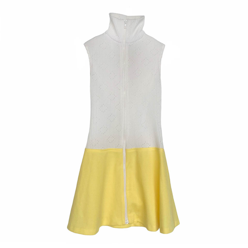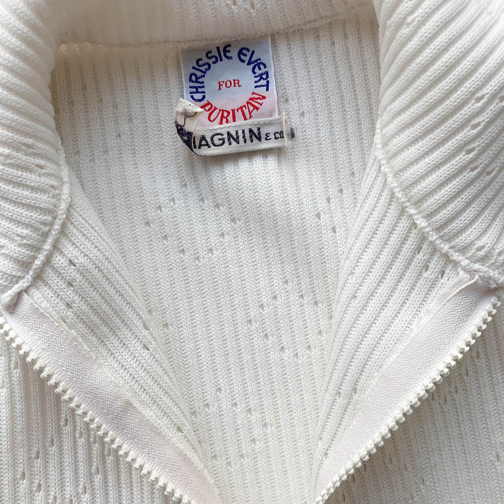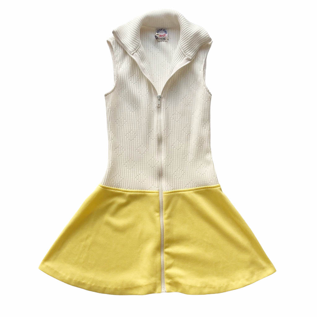 mini robe tennis Chrissie Evert Elephant Paris vintage Mesures à plat : Epaules 32/37cm, Poitrine 34/5 cm, Taille 32/46cm, Longueur dos avec col cheminée 84cm, Taille globale 34/36