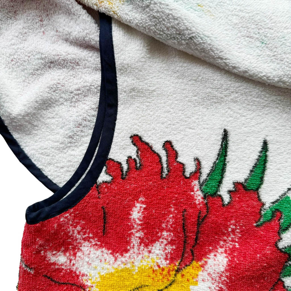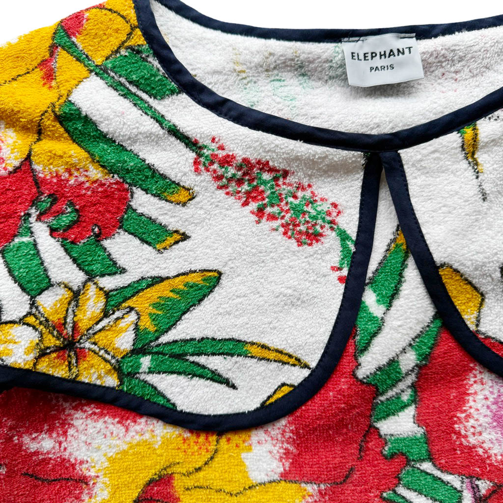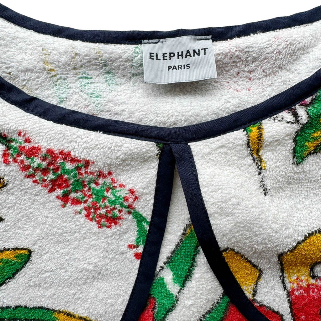 Mini robe trapèze éponge Club Med Beach Elephant Paris Design Réalisé avec des matériaux anciens, Pièce unique Made in France, Mesures à plat : Epaules 37cm, Poitrine 48cm, Longueur dos 80cm, Taille S/M