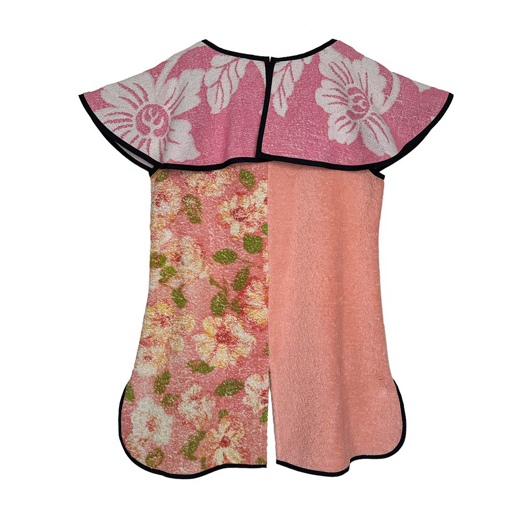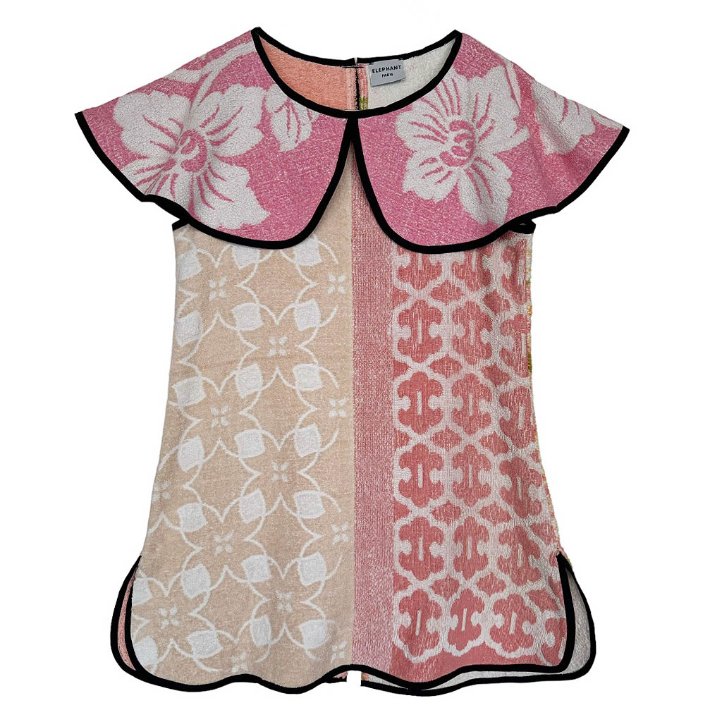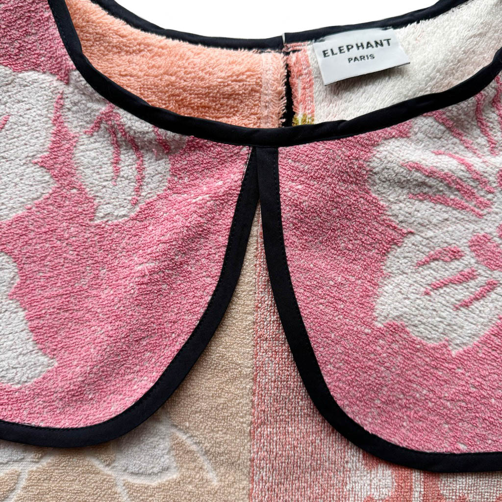 Mini robe trapèze éponge poudrée Elephant Paris Design Réalisé avec des matériaux anciens, Pièce unique Made in France, Mesures à plat : Epaules 37cm, Poitrine 48cm, Longueur dos 80cm, Taille S/M