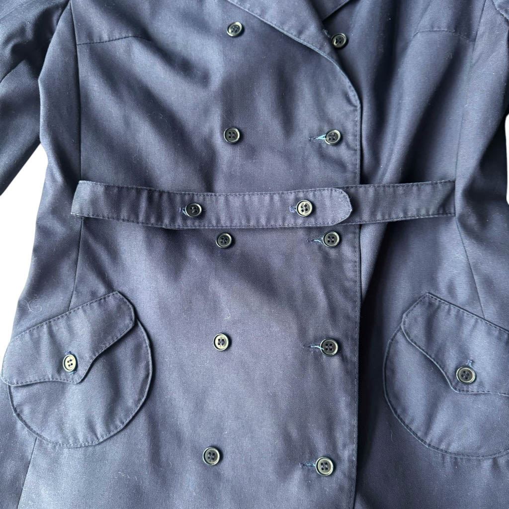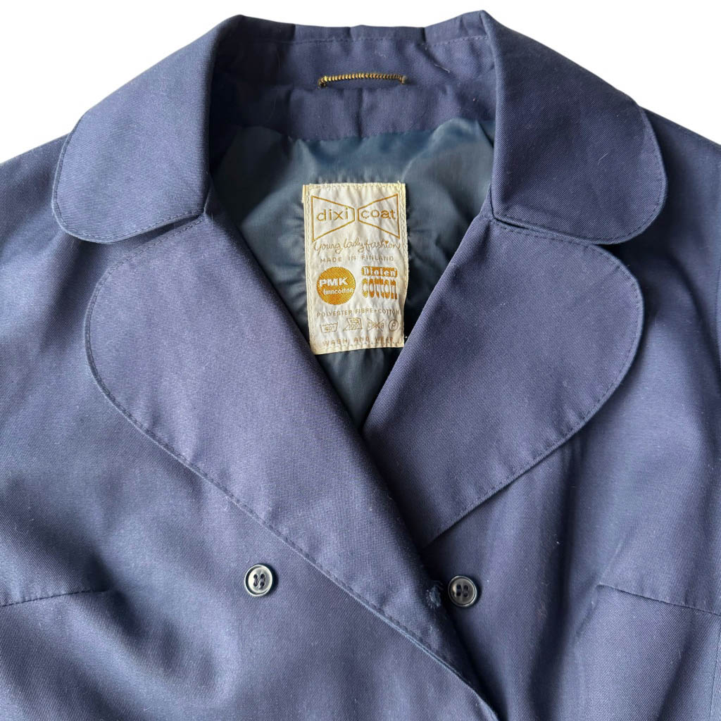 Mini trench marine dixi coat Elephant Paris Vintage Trench marine dixi coat vintage des années 70, Young Lady Fashion, fibre polyester et coton Diolen, Mesures à plat : Epaules 37cm, Poitrine 45cm, Taille 38cm, Longueur dos 87cm, Taille XS/S, made in Finland