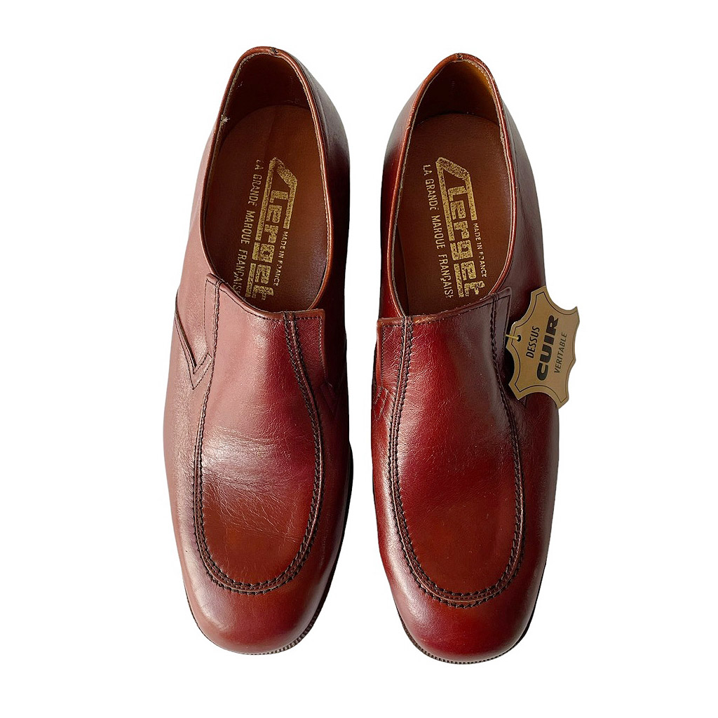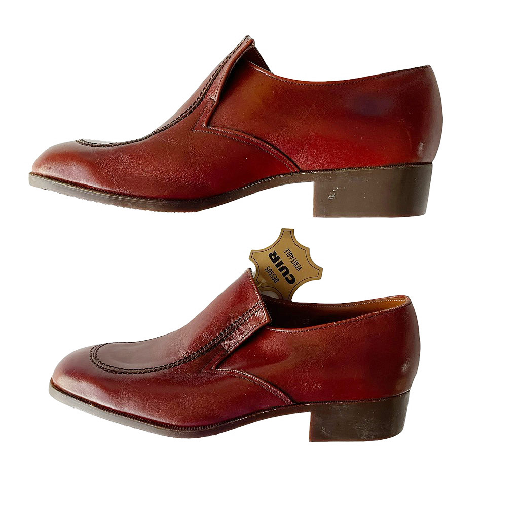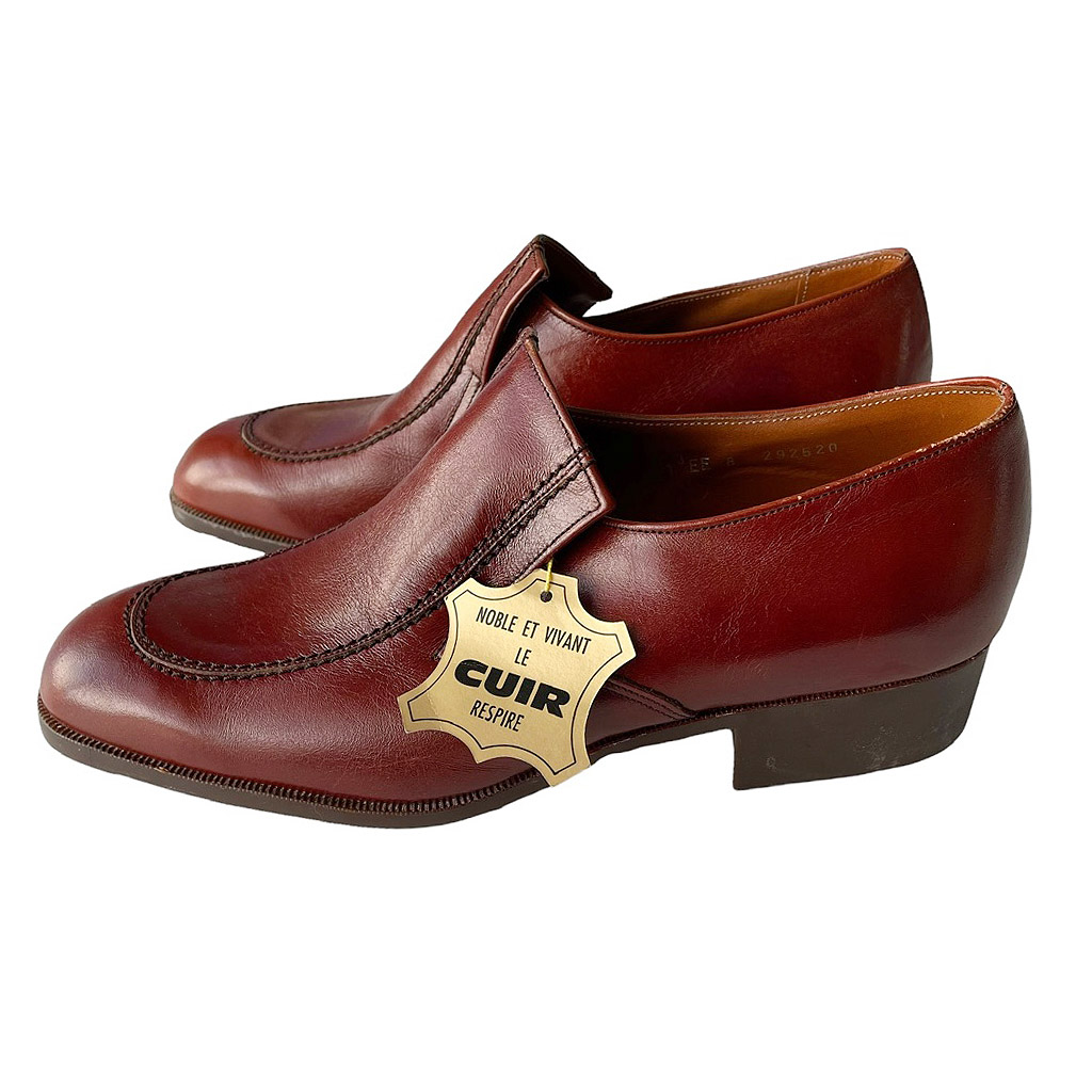Mocassins cuir Clerget vintage années 70, neuves d’époque, semelle souple élastomère. Pointure 41