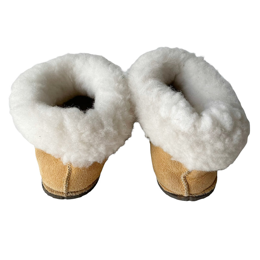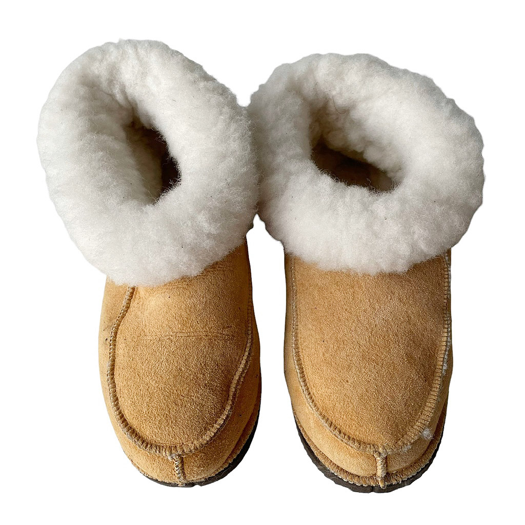 Mocassins souples en peau cousus en daim peau lainée, des années 70, semelles souples en élastomère, peut se retourner comme une bottine Pointure 38