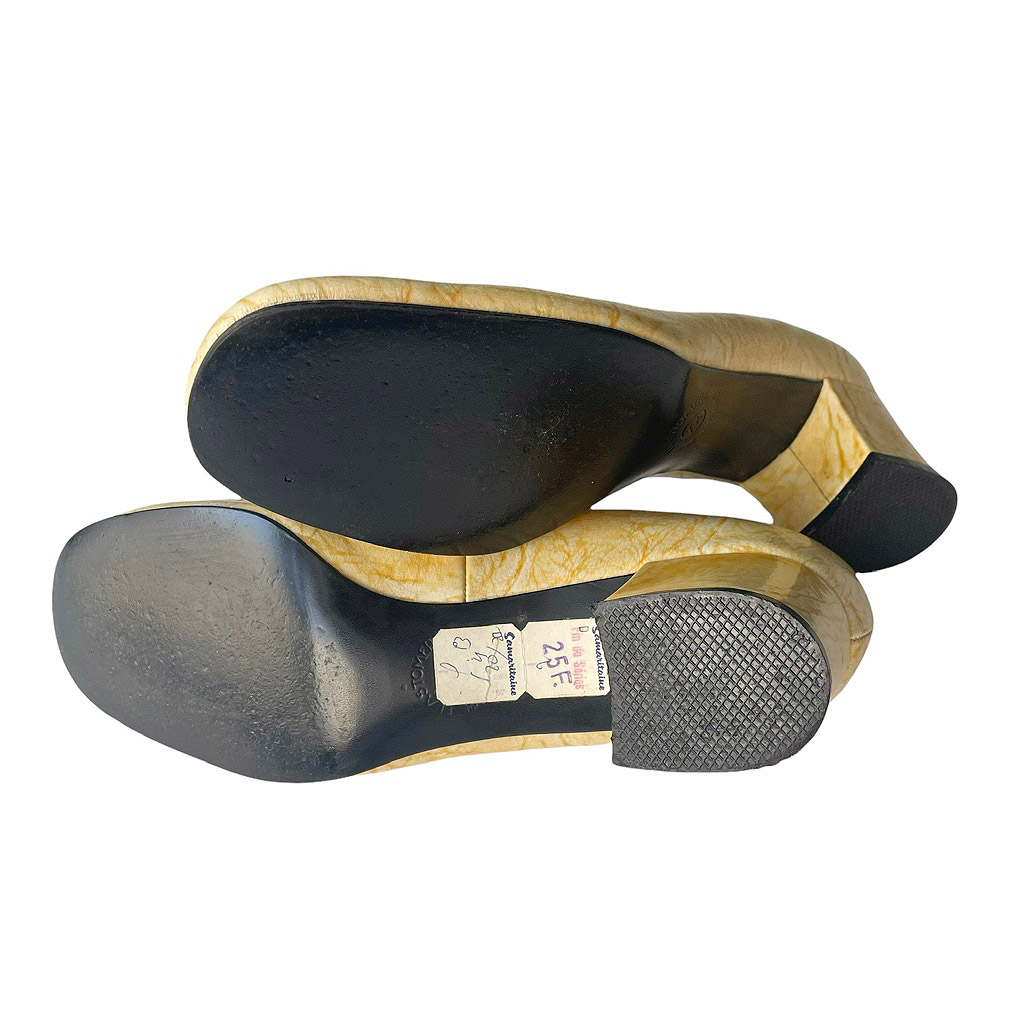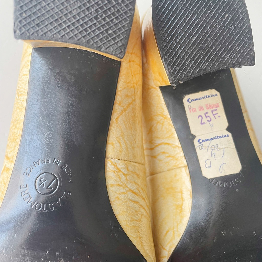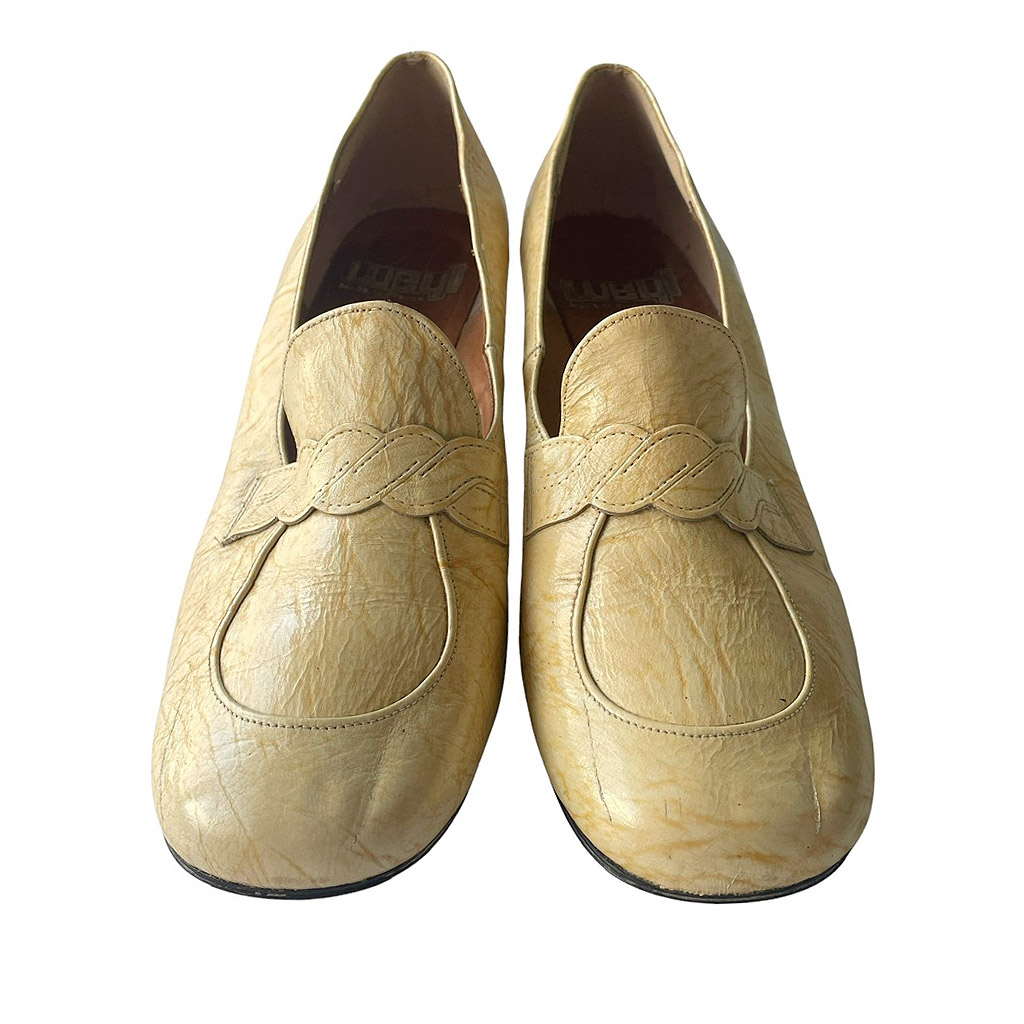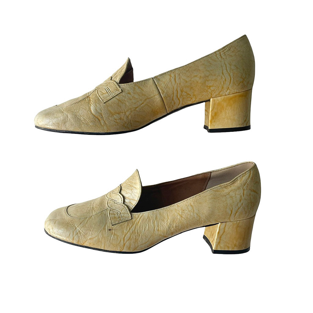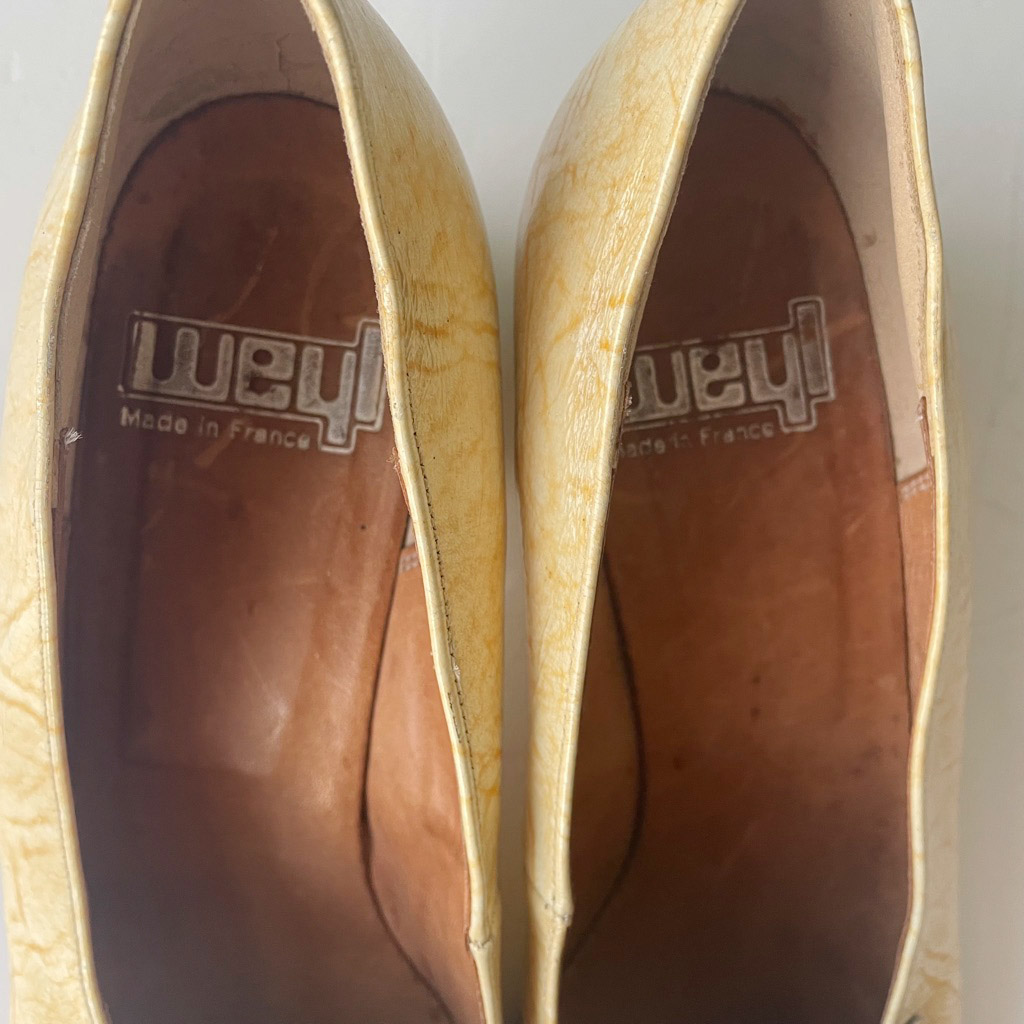 Mocassins talons Weyl 70s Mocassins à talons carrés arrondis Weyl vintage années 70, cuir verni, doublés cuir, pointure 40, hauteur talon 5cm