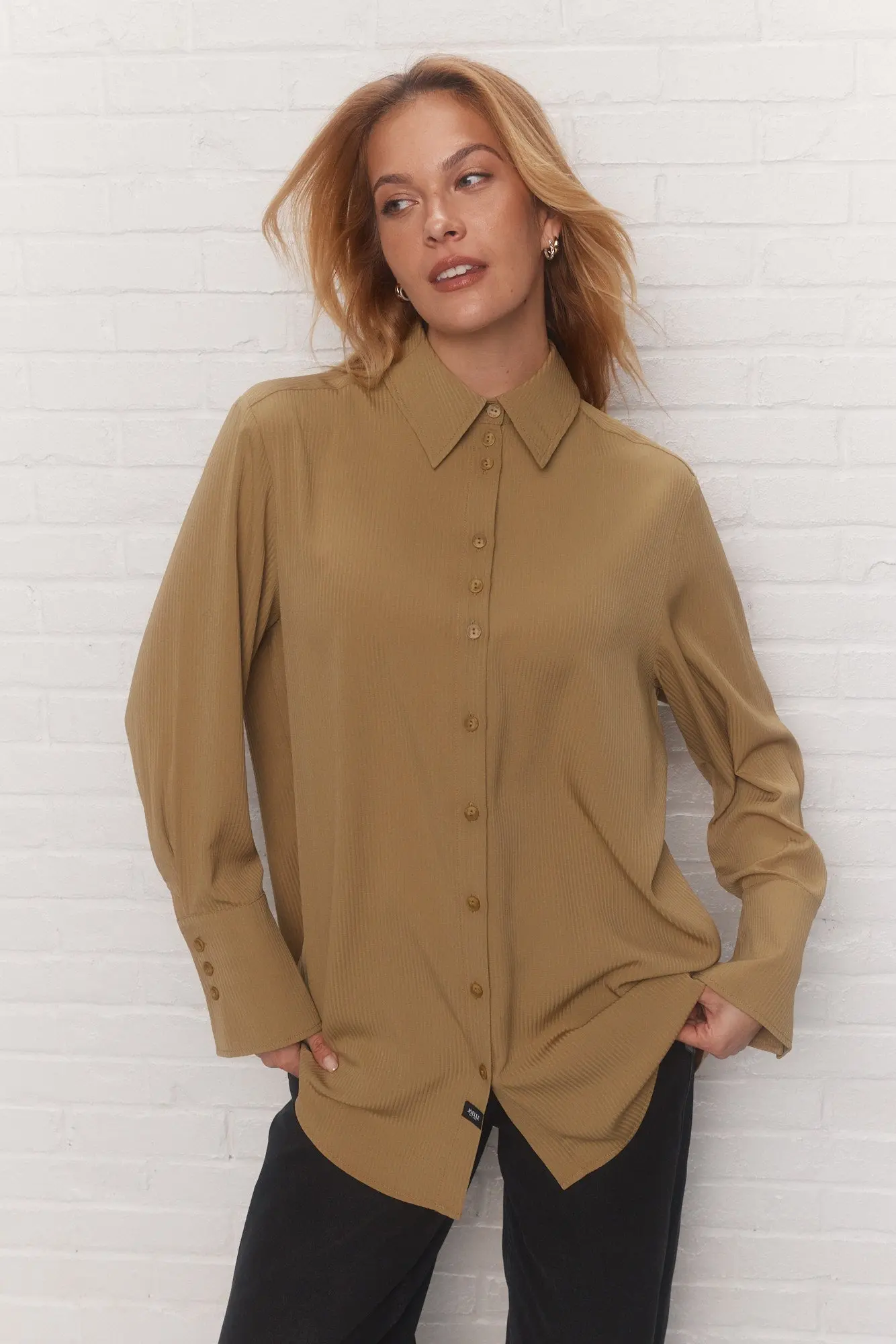 – Portez la chemise verte à carreaux boutonnée, semi-boutonnée (dans le haut) ou déboutonnée en veste sur un t-shirt ou une camisole.