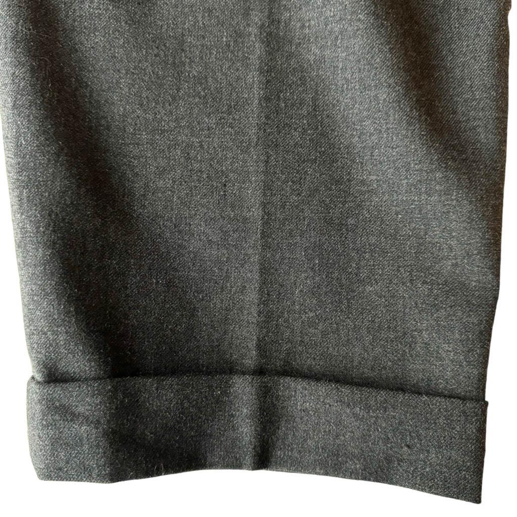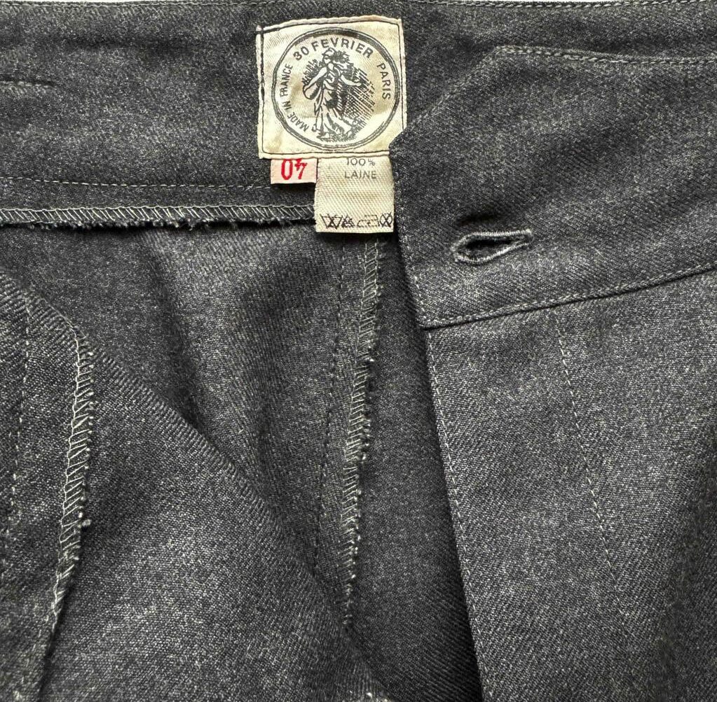 Pantalon laine gris pinces 30 Février Elephant Paris vintage Années 80 Mesures à plat : Taille haute 36cm, Hanches 48cm, Longueur entrejambe depuis la taille 29cm, Longueur 102cm, Taille 36, S