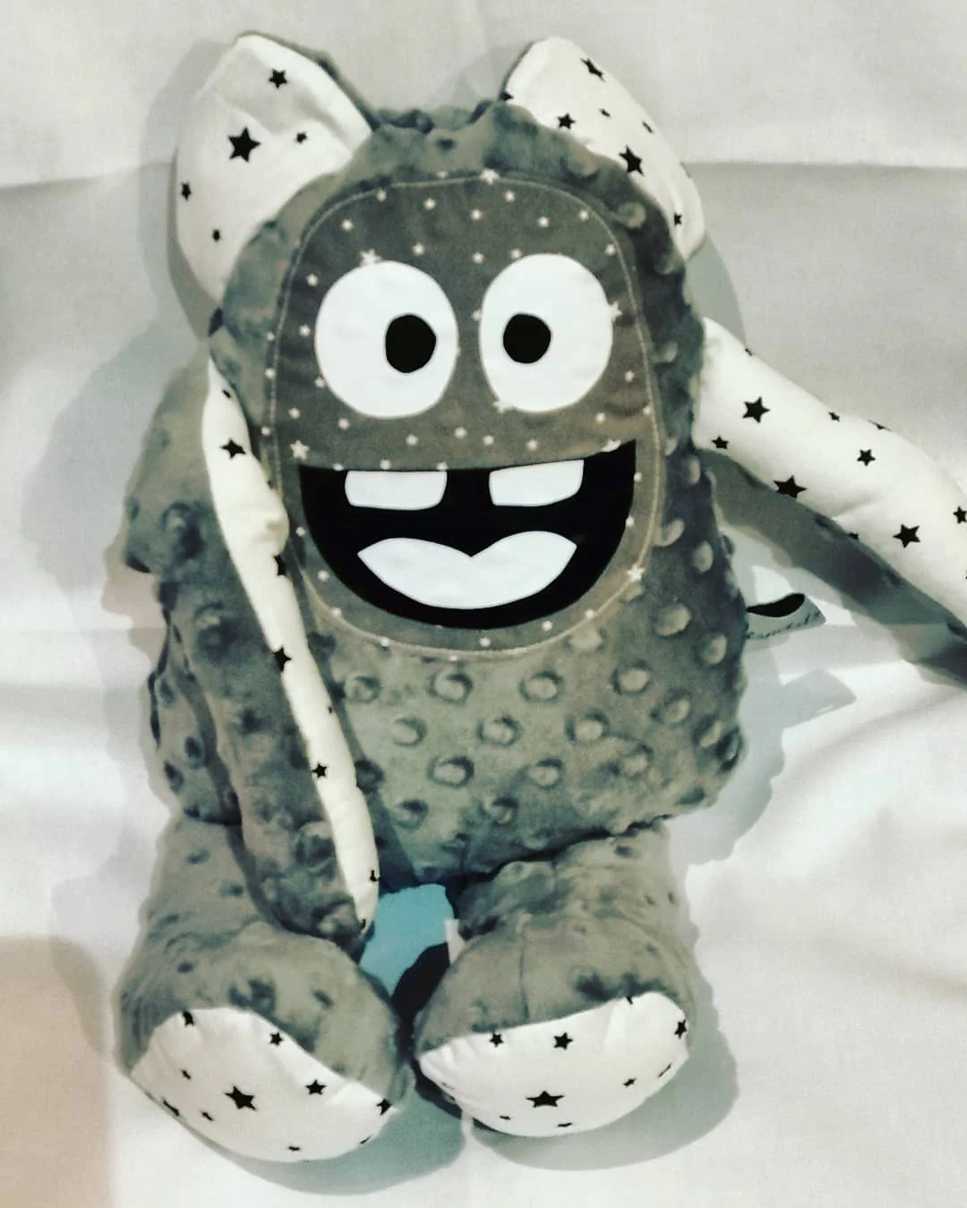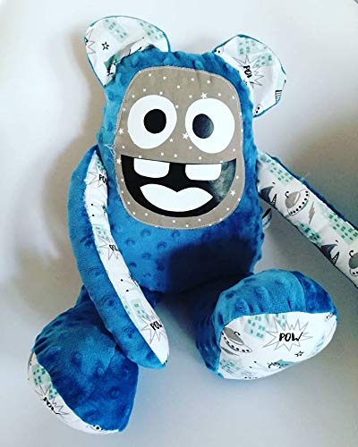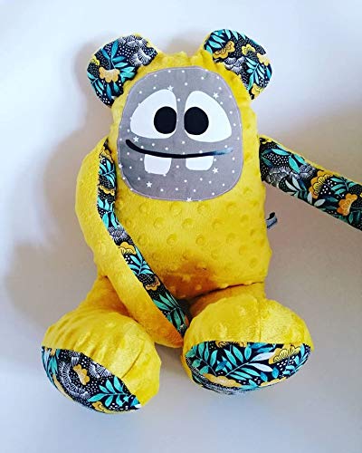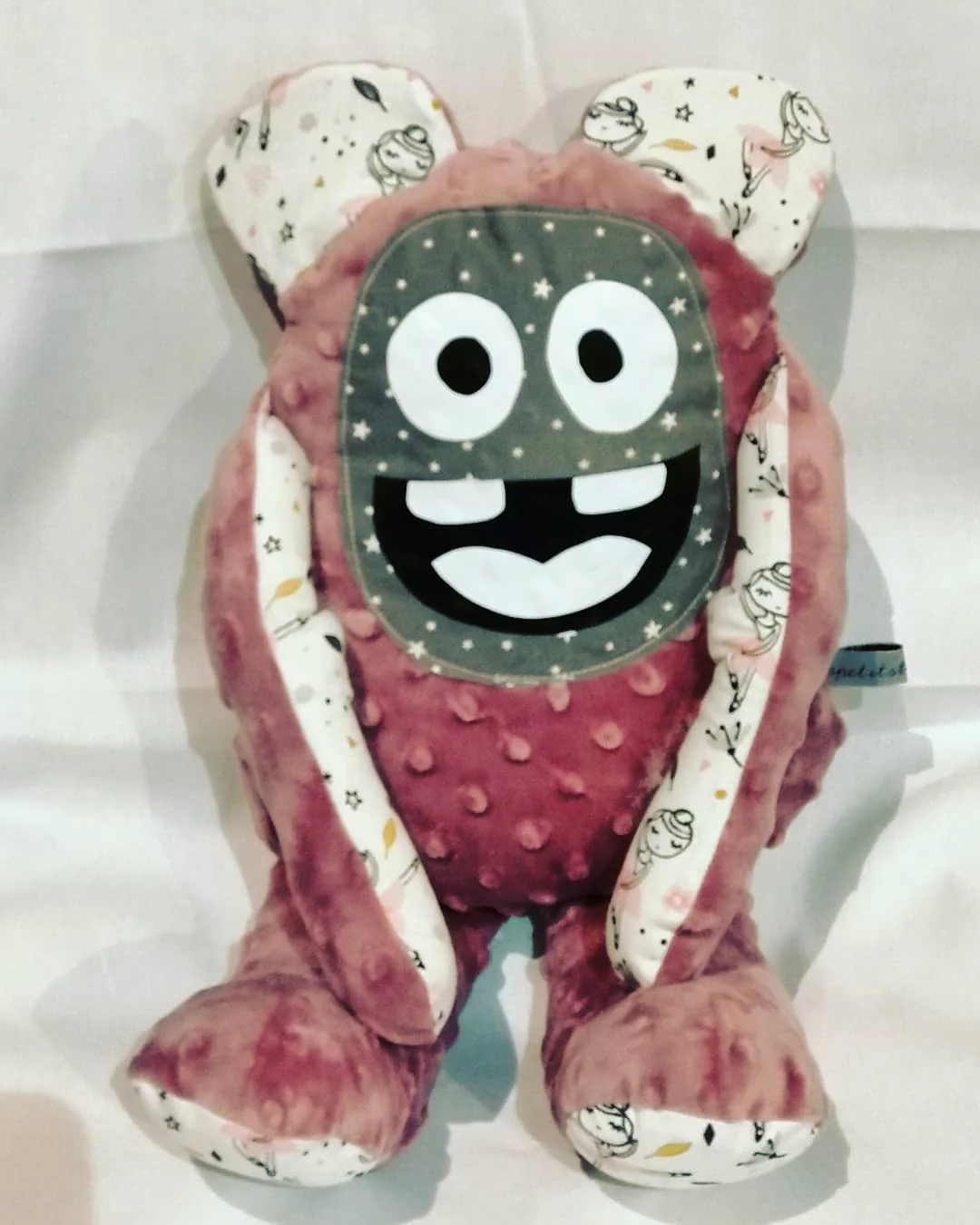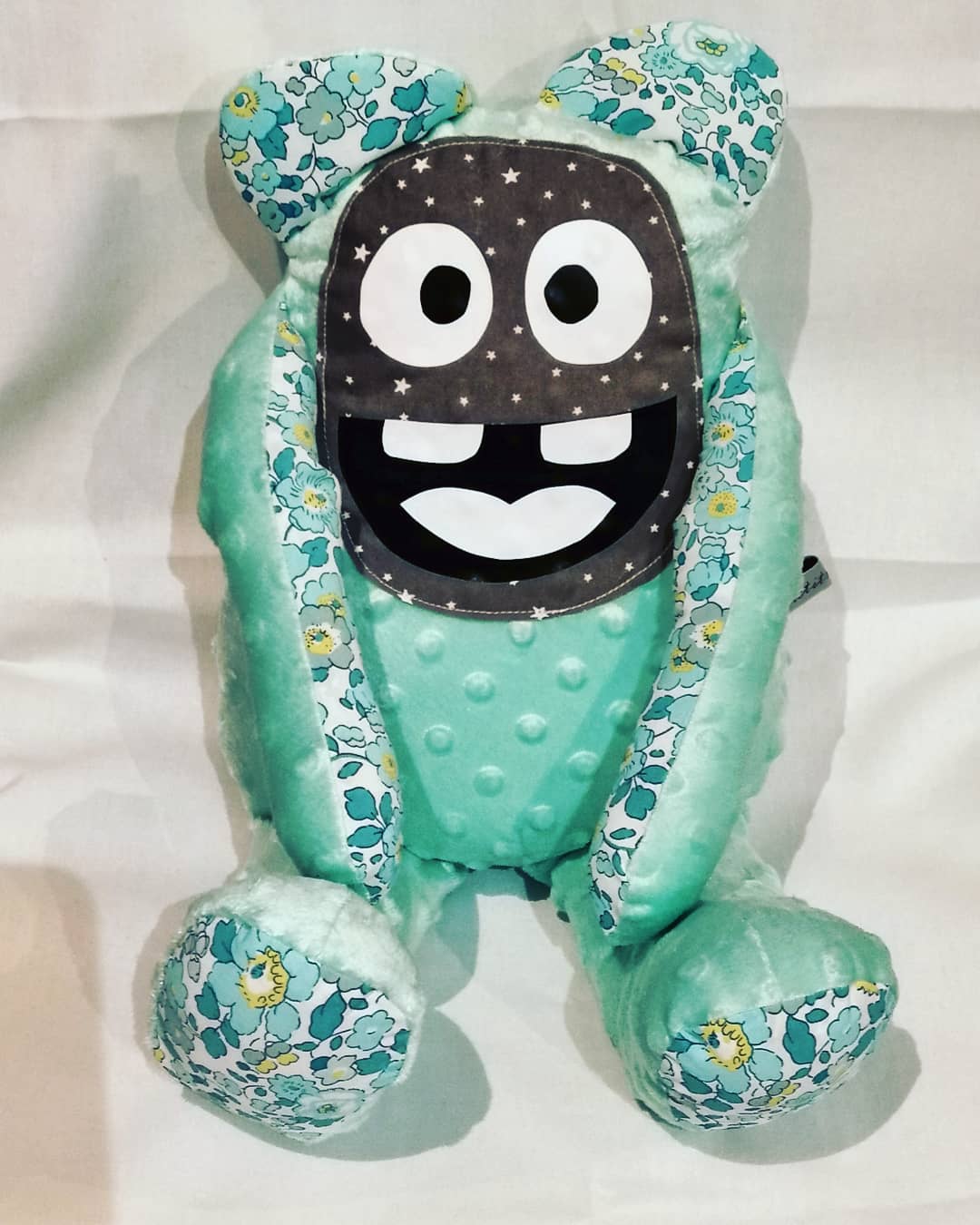 PELUCHE MONSTER EN VELOUR TOUT DOUX ET COTONDIMENSION ENVIRON 40 CMEN TISSU LABET OEKO TEXFAIT MAIN