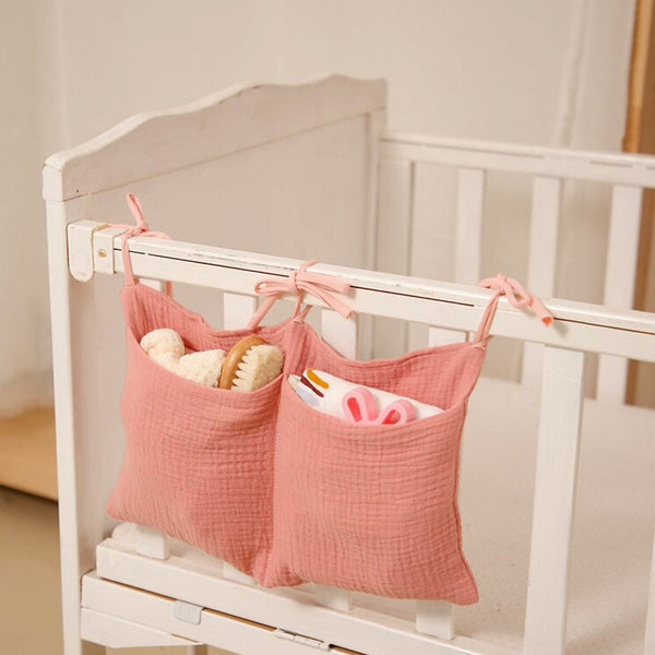 Cette pochette de rangement est un accessoire pratique et sûr pour la chambre de bébé.