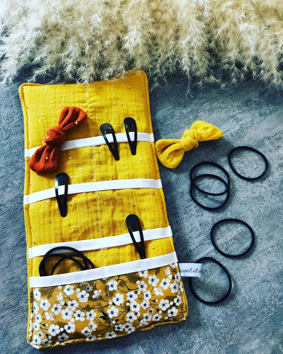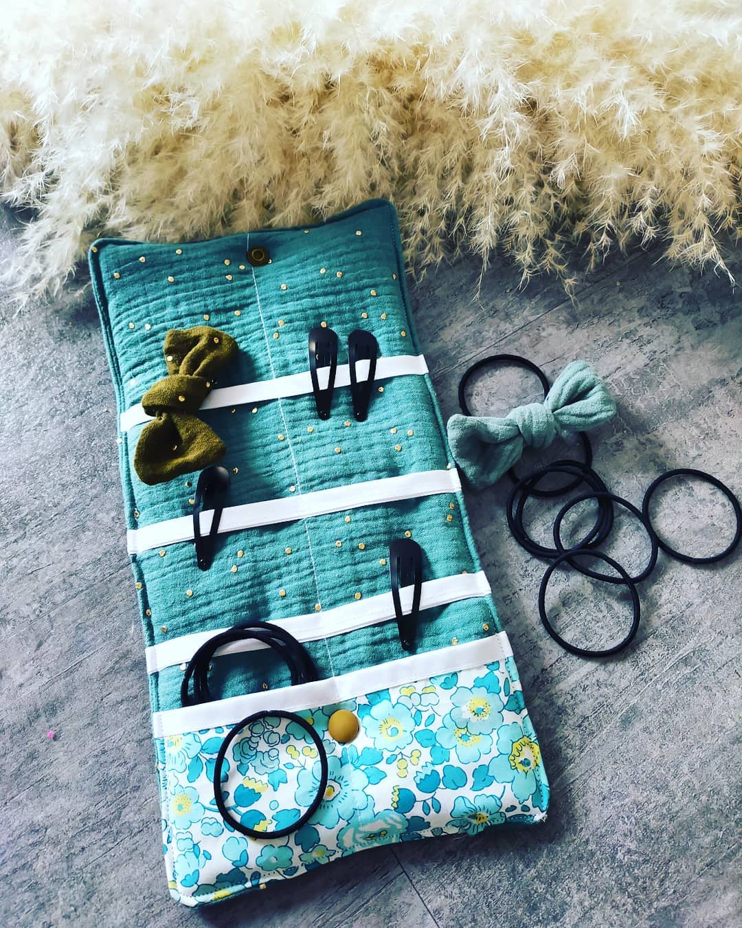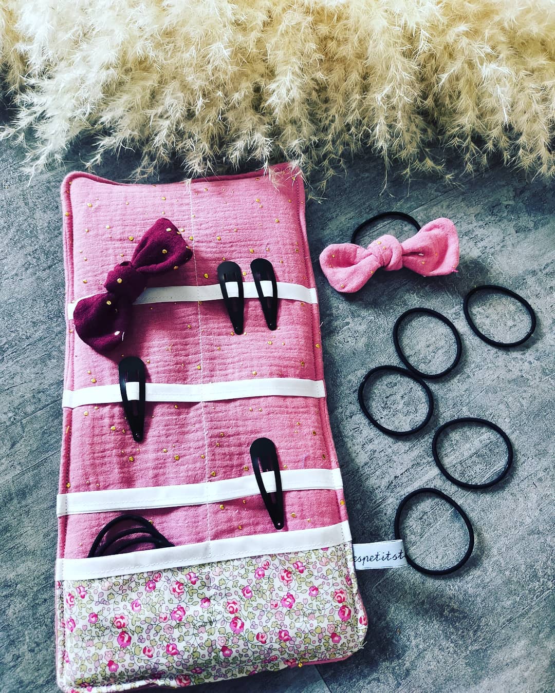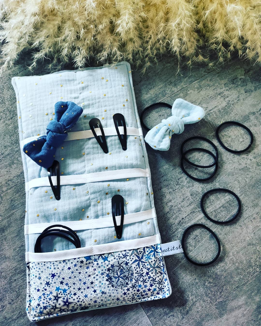 Pochette molletonnée pour rangement de vos barrettes et élastiques et ainsi ne plus les perdre