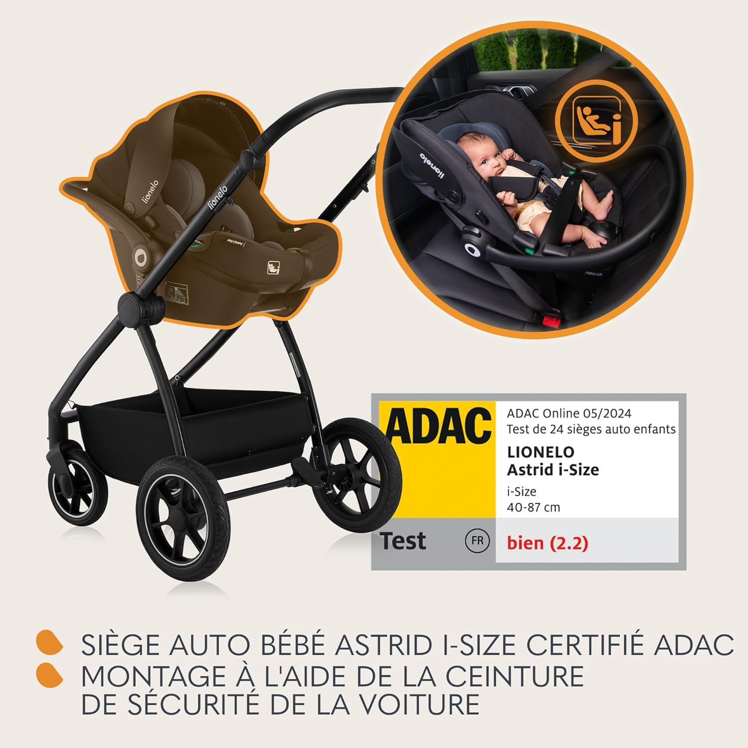 Découvrez la poussette LIONELO MERIL 3 en 1, un modèle raffiné qui allie sécurité et confort, conçu pour accompagner votre enfant de la naissance à 48 mois avec style et facilité.