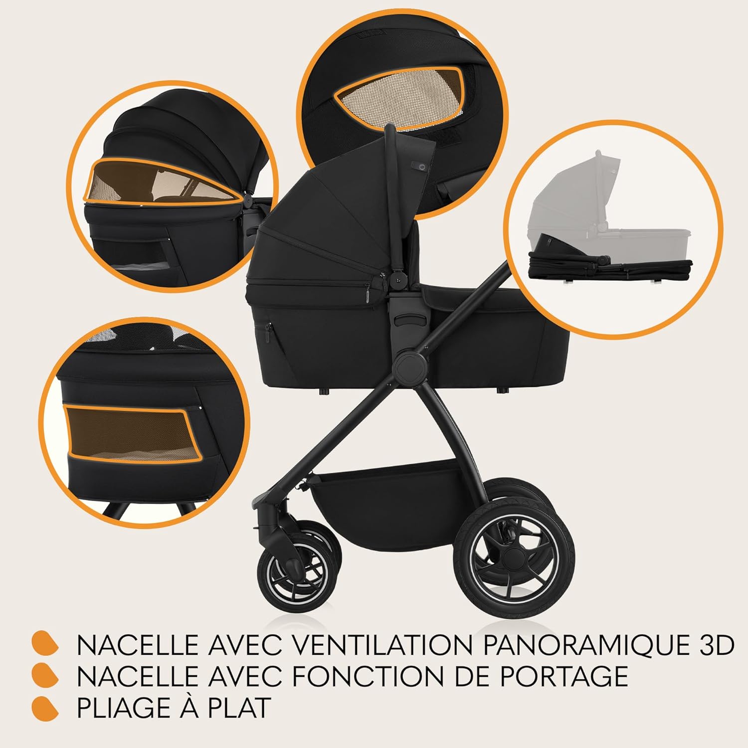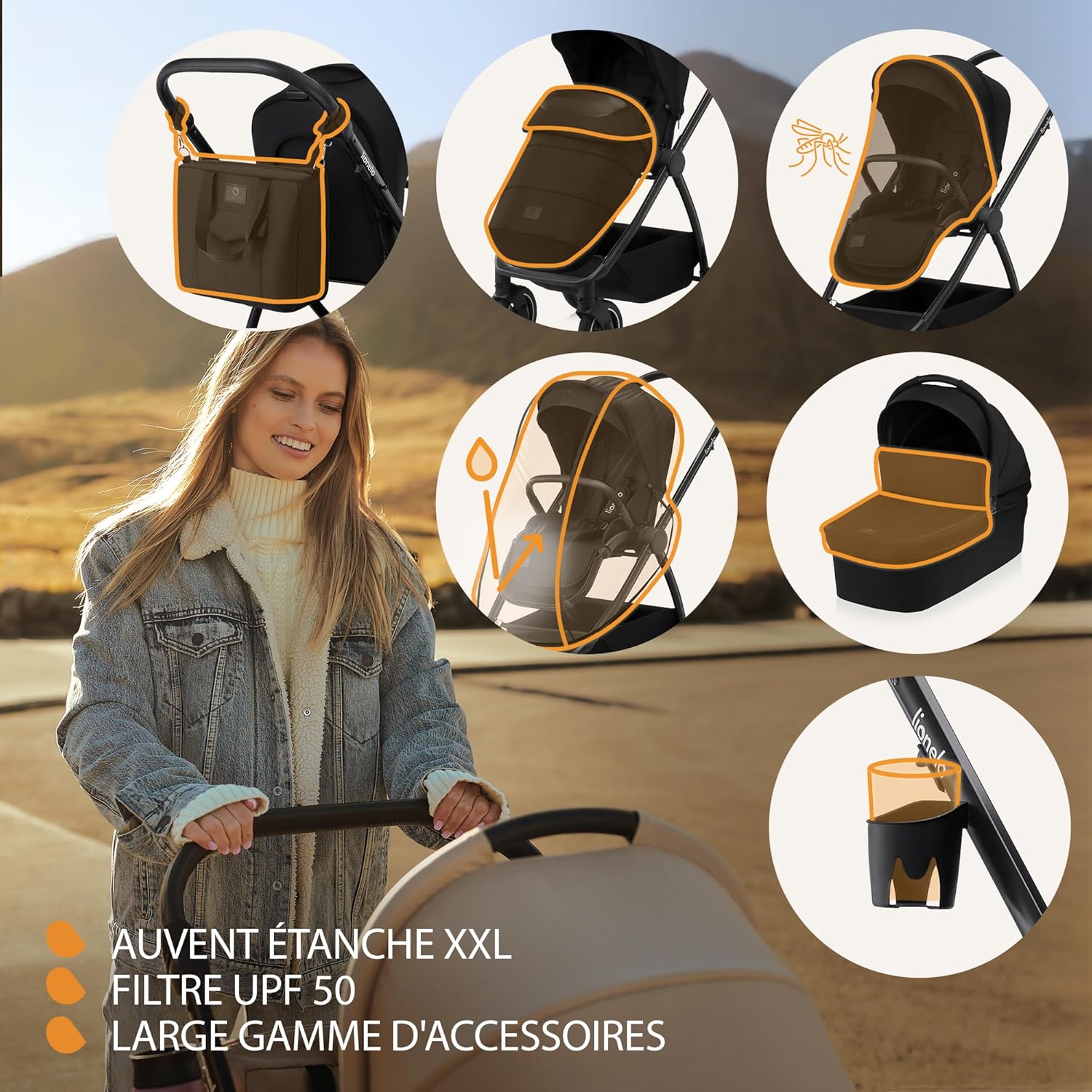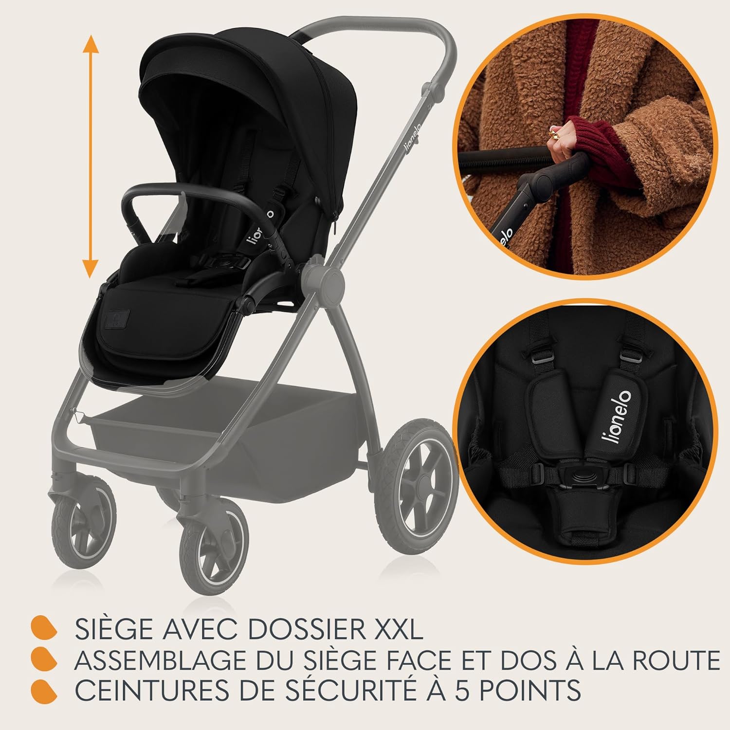 **Poussette 3 en 1 Lionelo Meril – Multifonctionnelle, Tout-Terrain, Noir**