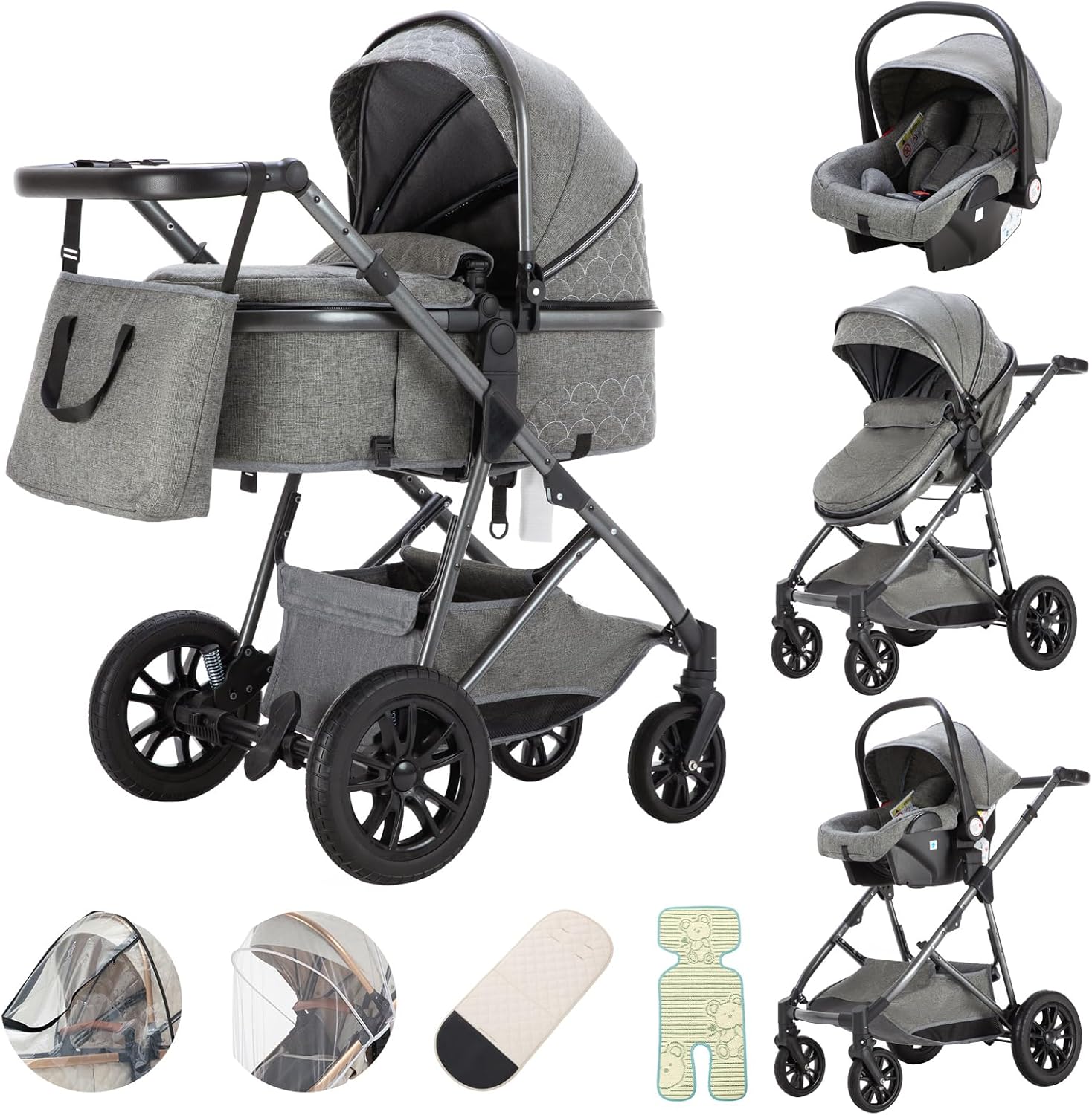 Poussette 3 en 1 Zkiprm – Poussette Portable Réglable avec Siège Auto, Gris Foncé