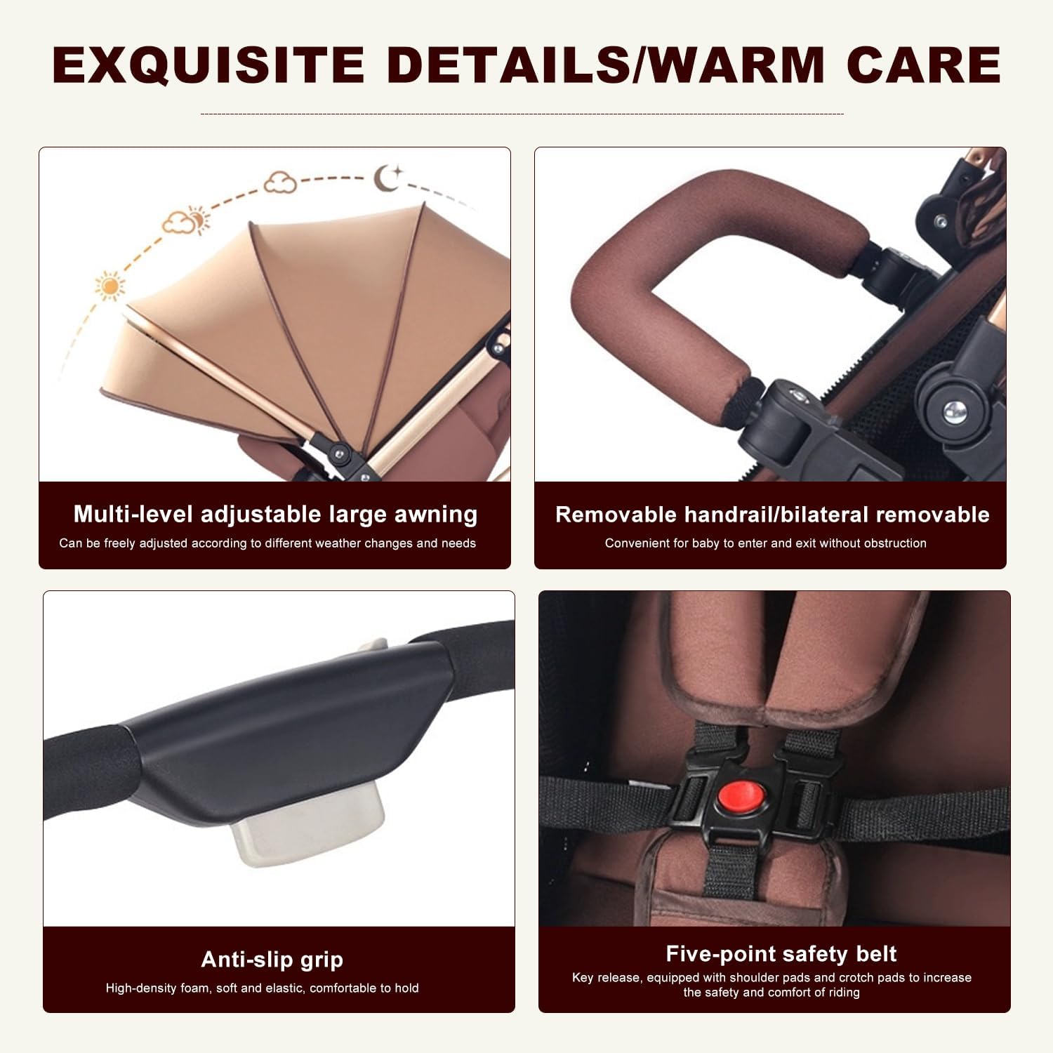 Élégante dans son coloris marron, la poussette K IKIDO se distingue par ses finitions soignées et son design moderne. Ses lignes épurées et son style minimaliste s’intègrent parfaitement dans l’environnement urbain tout en offrant une expérience esthétique raffinée. La capote réglable et les tissus certifiés de qualité supérieure garantissent une protection optimale contre les intempéries tout en préservant le confort de votre enfant.