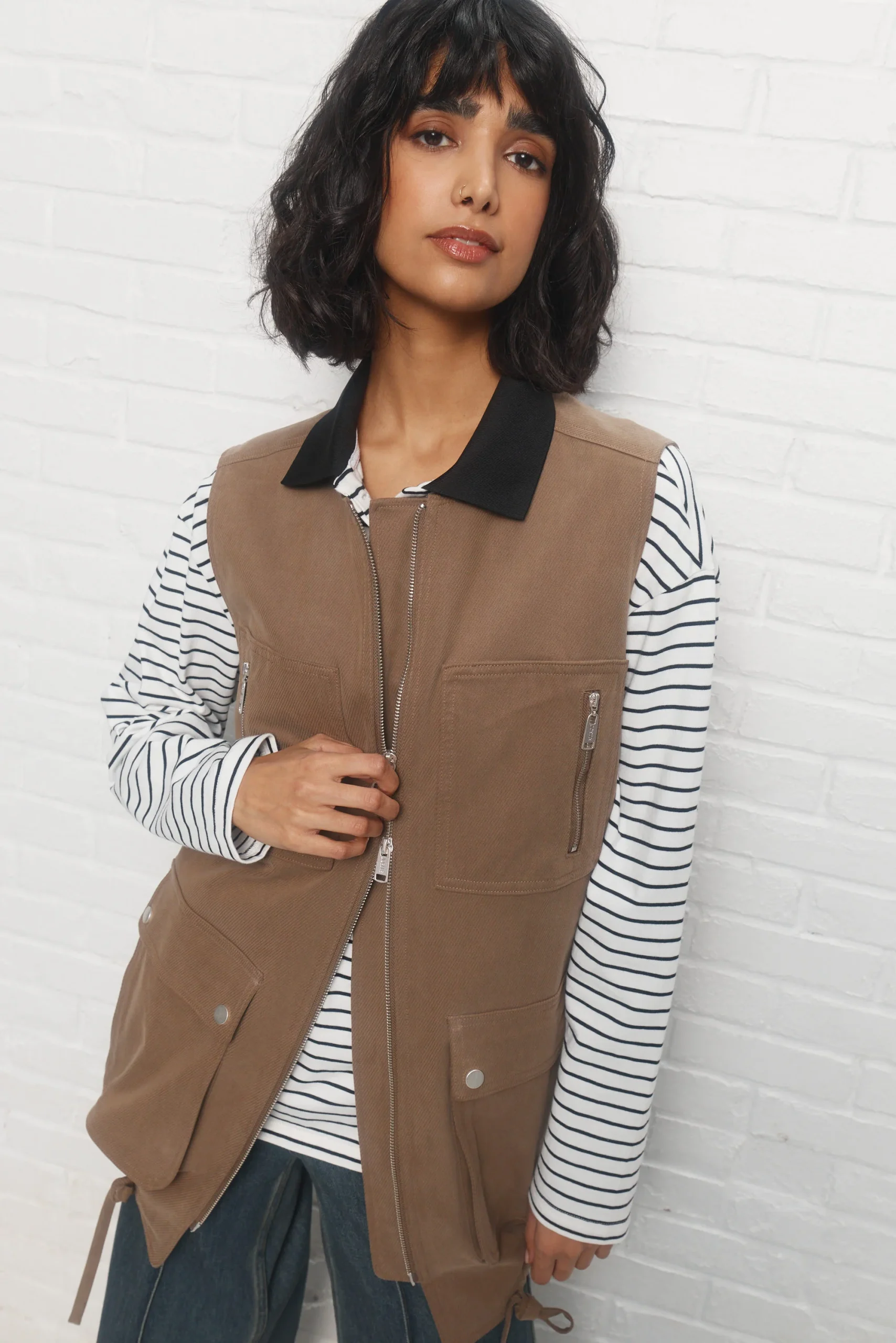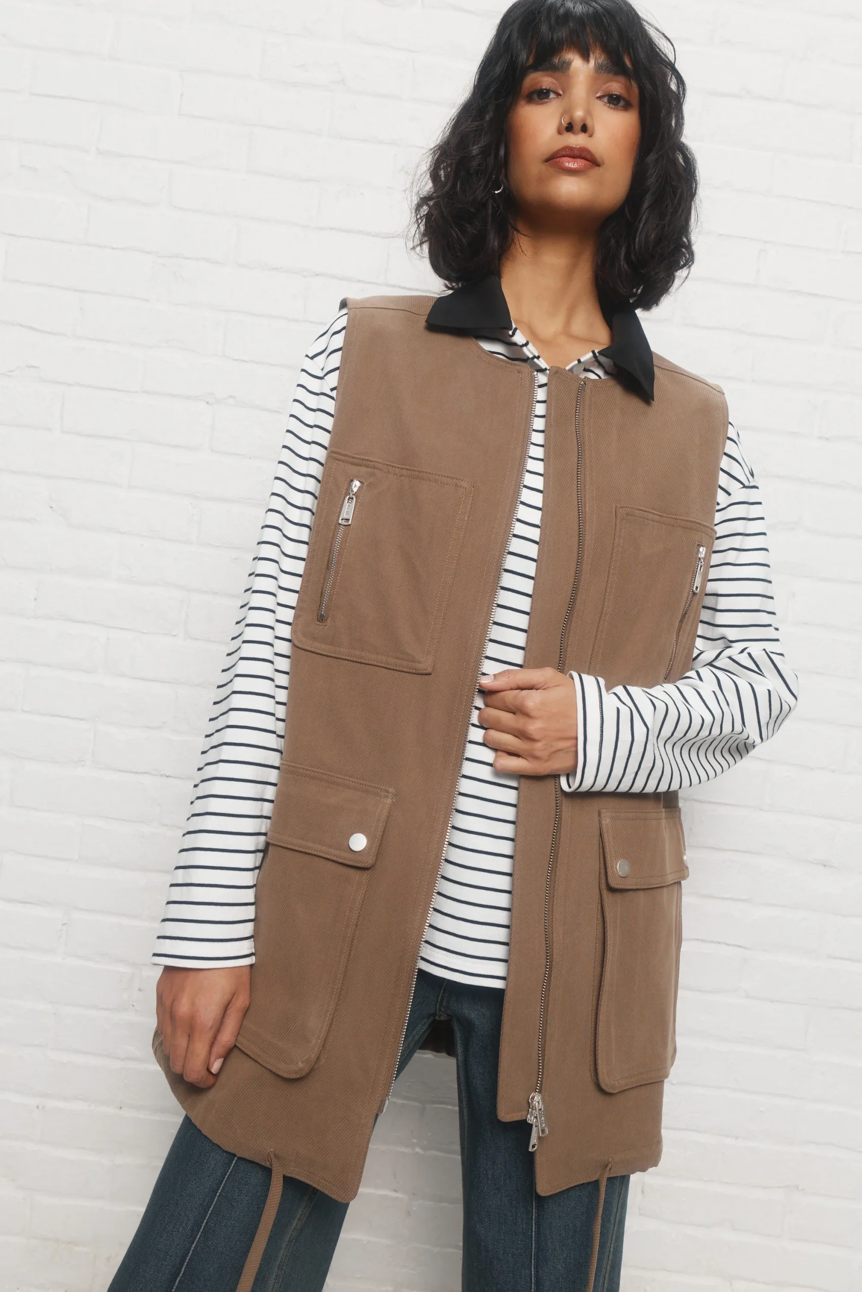 Le modèle mesure 5’9’’ (buste 32, taille 24, hanches 34) et porte la taille S