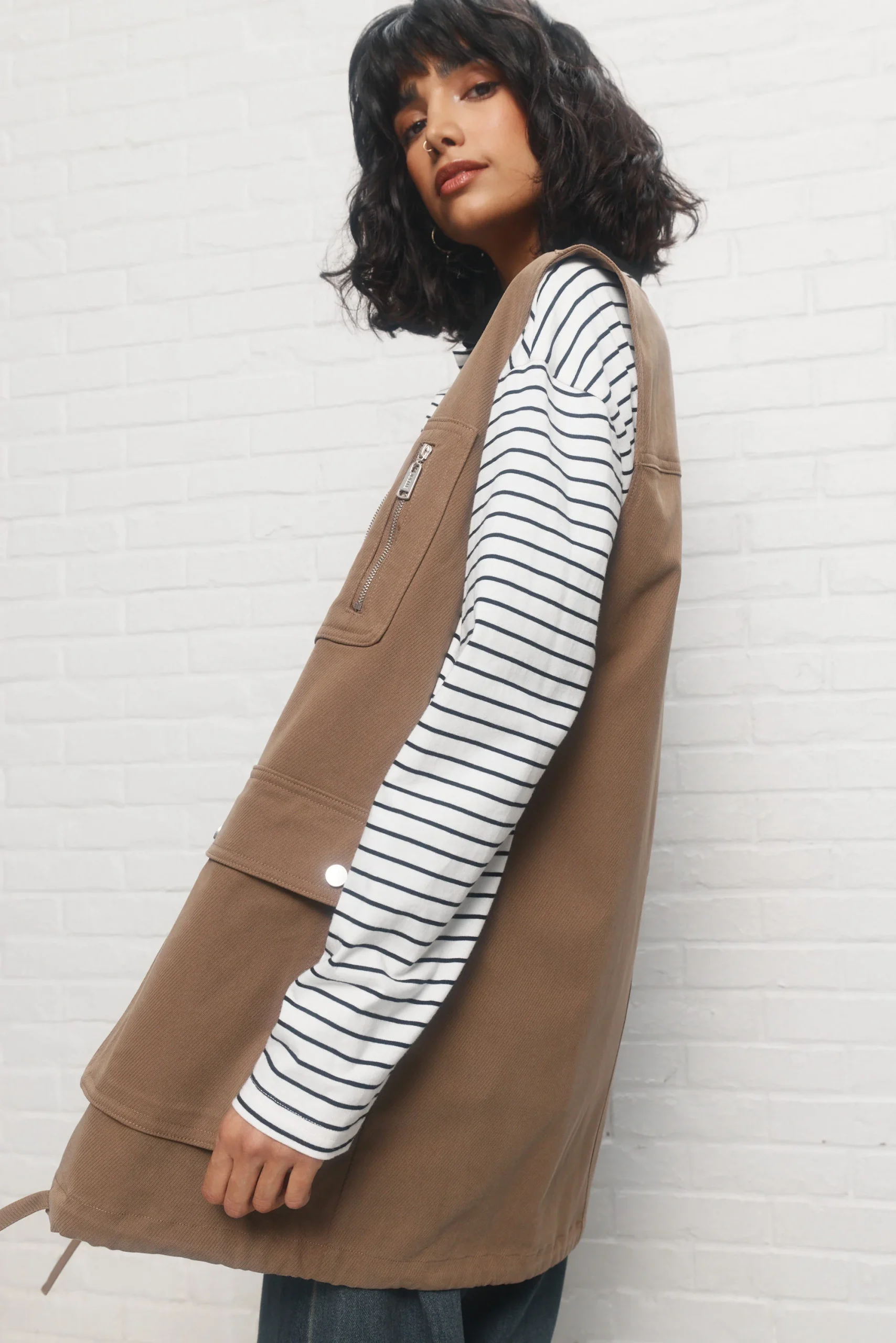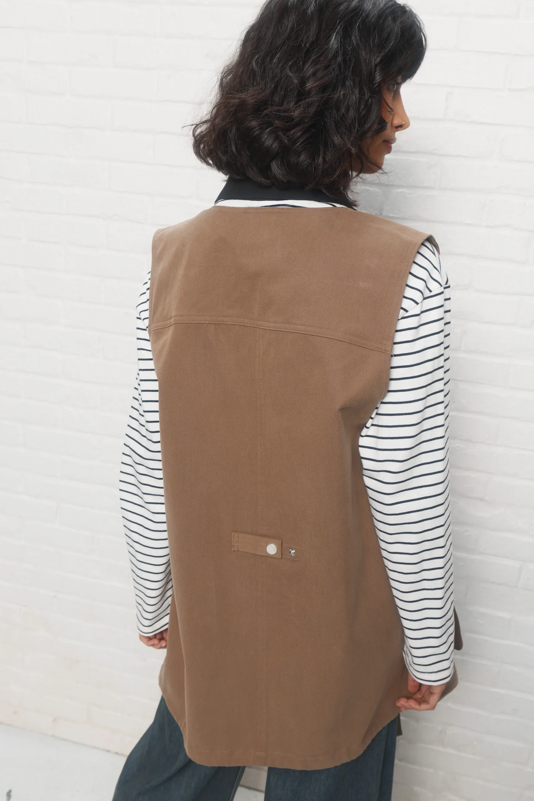 Vous pouvez prendre votre grandeur habituelle (coupe ample). Si vous avez tendance à varier entre deux tailles, vous pouvez opter pour la plus petite taille pour une coupe semi-ample ou la plus grande taille pour une coupe ample. Si vous êtes moins confortable avec les coupes amples, vous pouvez opter pour une taille plus petite afin d’obtenir un effet légèrement plus près du corps.