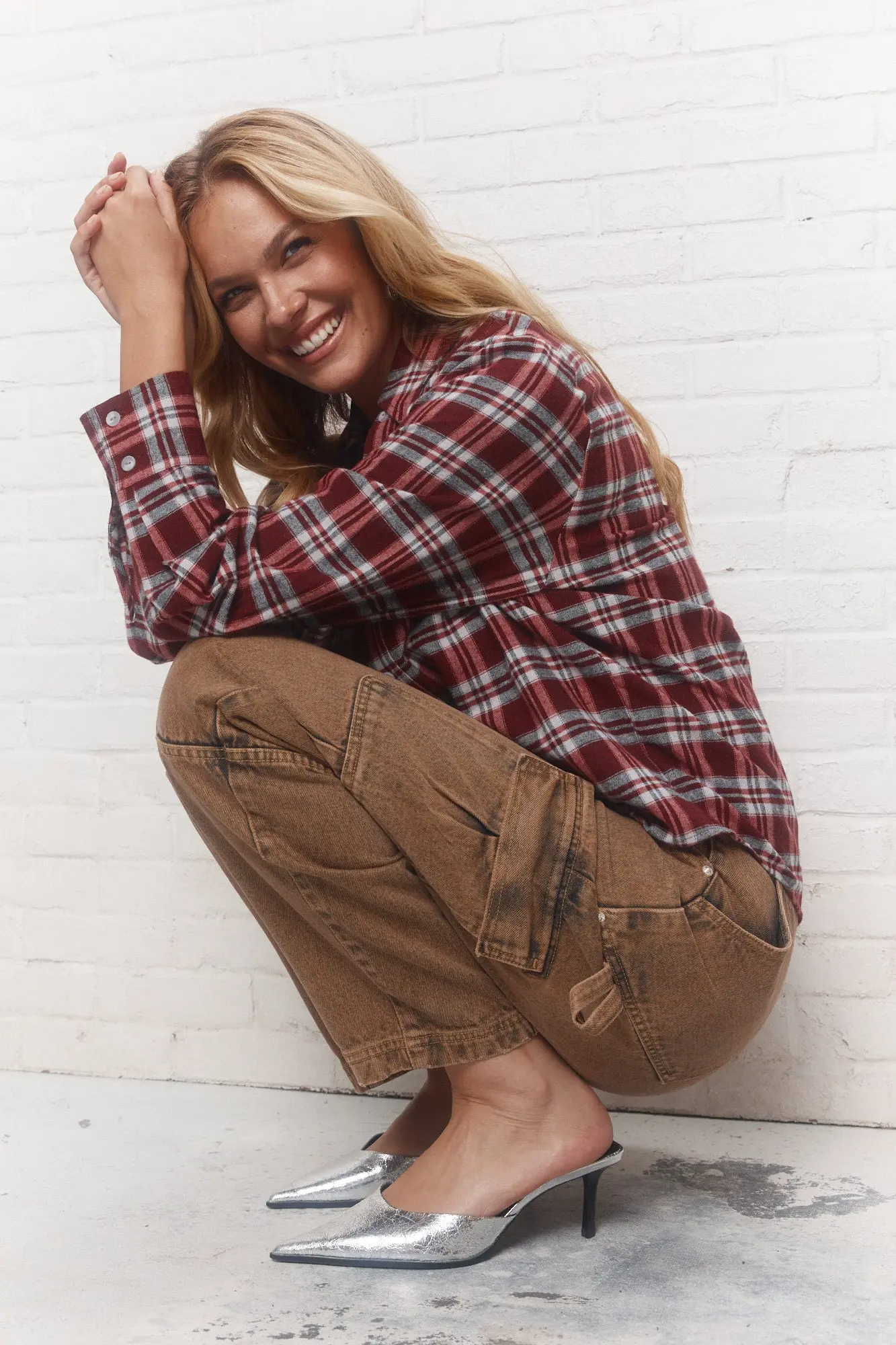 – Pour un look grunge, agencez la chemise rouge à carreaux à un pantalon utilitaire et à des bottes.