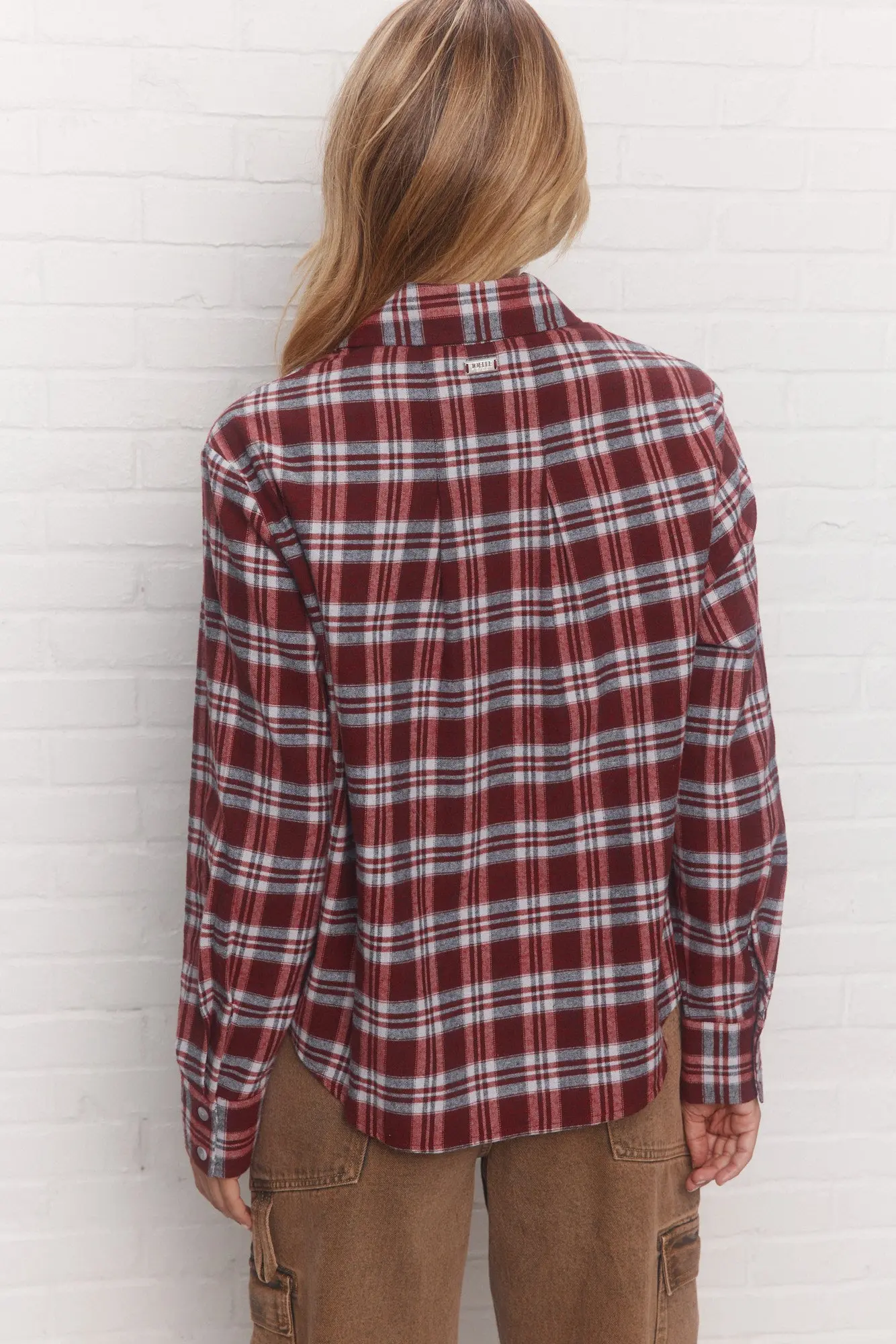 Un grand classique est la chemise rouge à carreaux, cette fois avec Rave, la version signée JOELLE, plus courte et féminine. Ses touches uniques : les pattes de boutonnage décoratives et les jolis plis au dos.