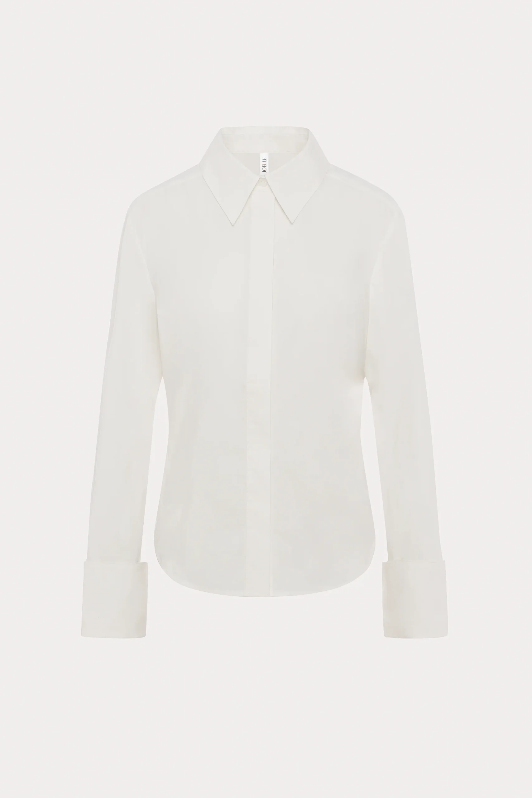 - Patte de boutonnage cachée et pince droite en diagonale au-devant