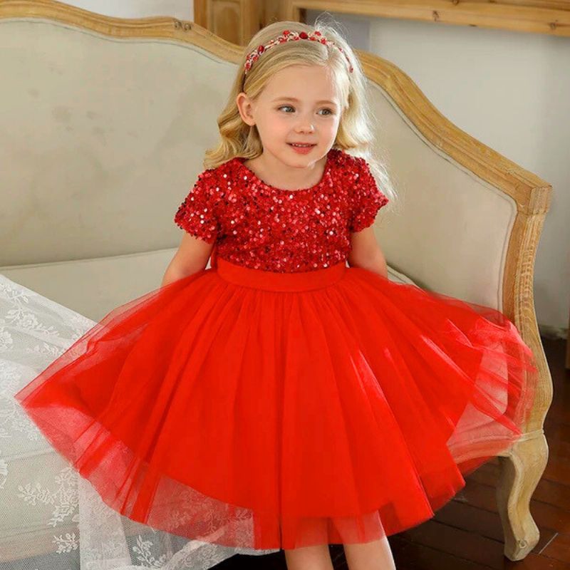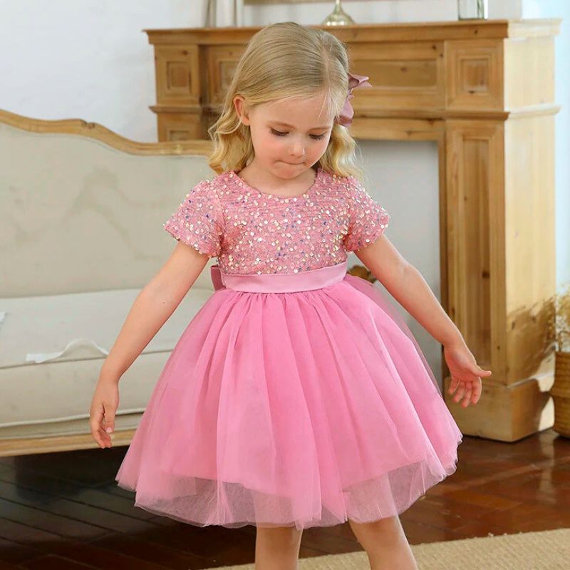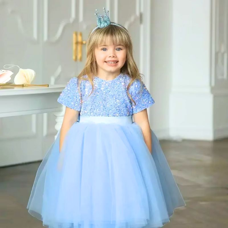 Transformez votre petite fille en véritable princesse avec notre robe de cérémonie pailletée, parfaite pour les mariages, anniversaires et fêtes !