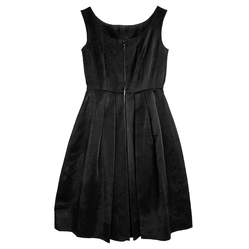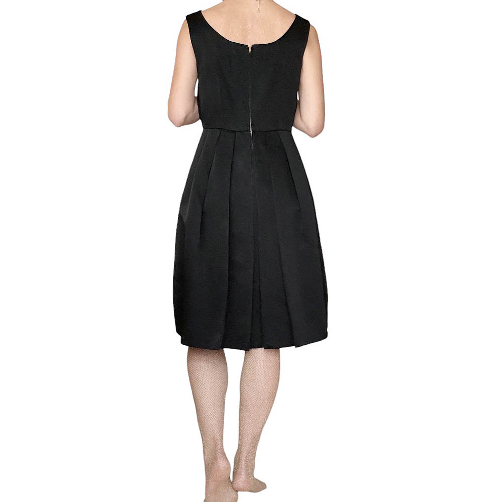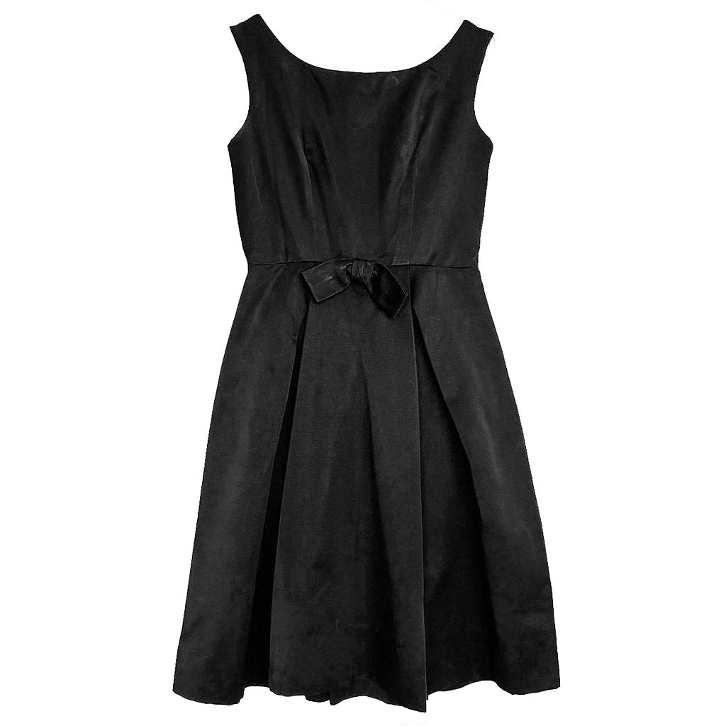 Robe noire bolero Maryse Monin 50s en satin rigide et coton, boutons bijoux, Elephant Paris vintage Taille mesure à plat 36cm, Taille 36/S