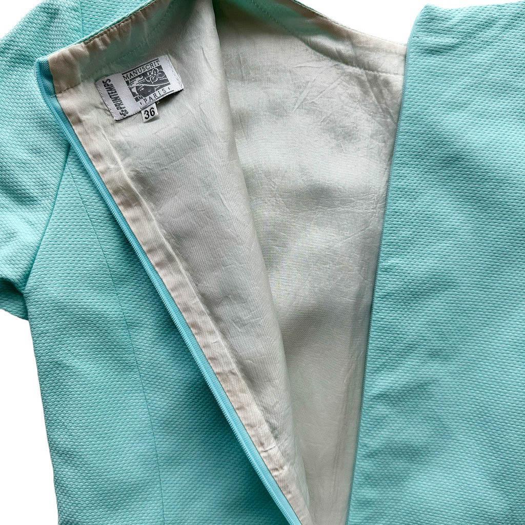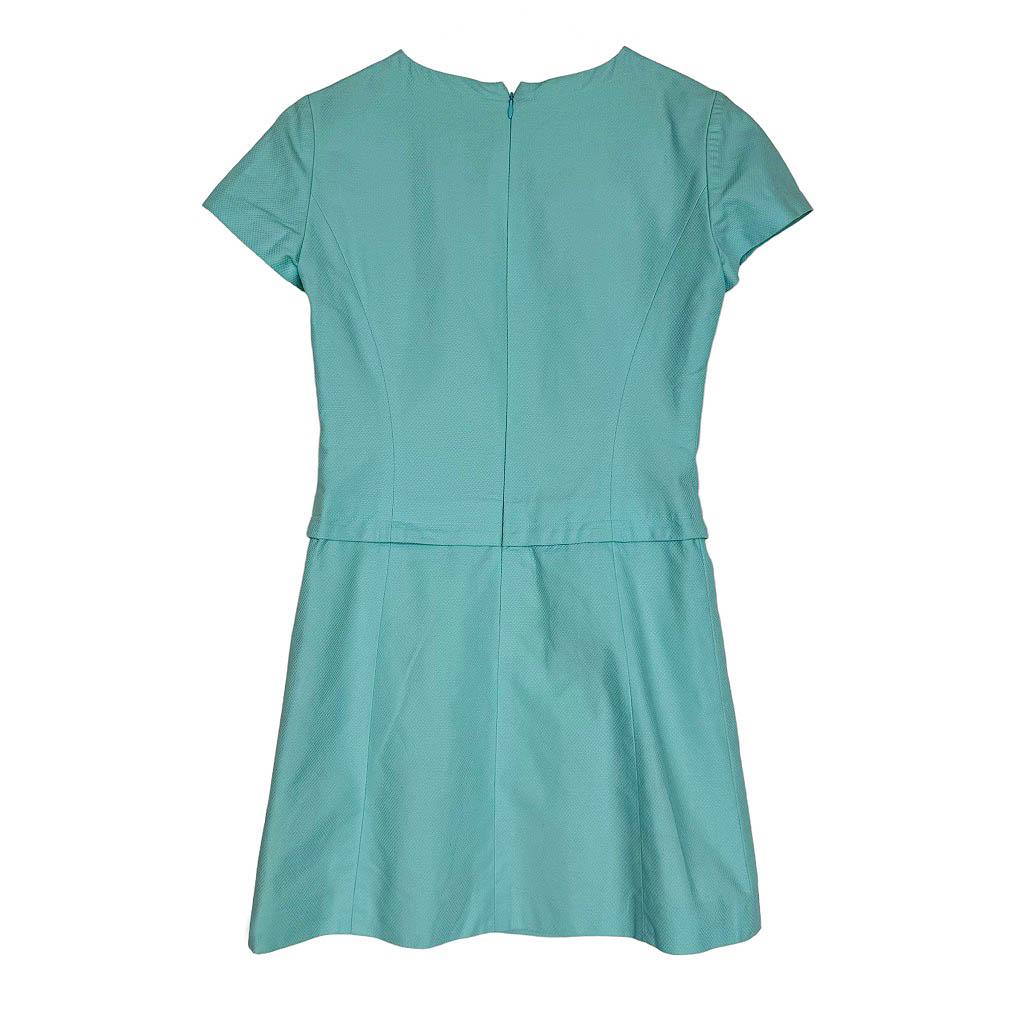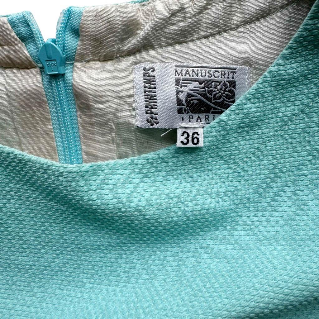 Robe pique de coton turquoise Printemps Elephant Paris Vintage Années 80, coton, Mesures à plat : Epaules 37cm, Poitrine 43cm, Taille 36cm, Longueur dos 78cm, Taille 34/36/XS/S be Une petite marque à signaler en haut d’une épaule voir photos