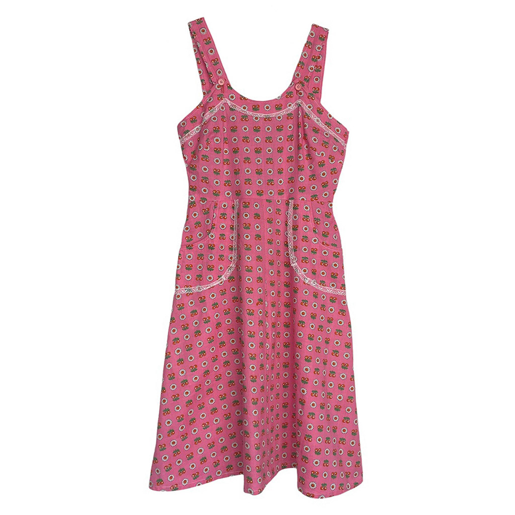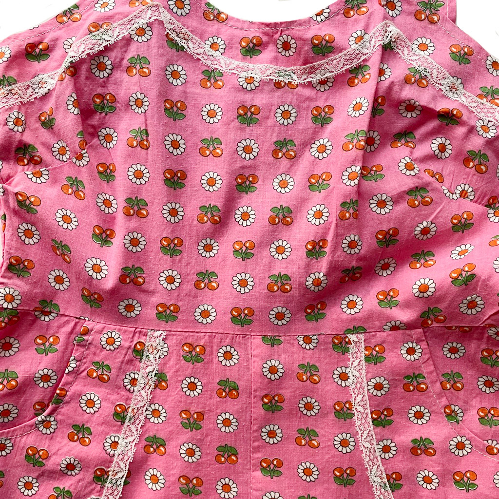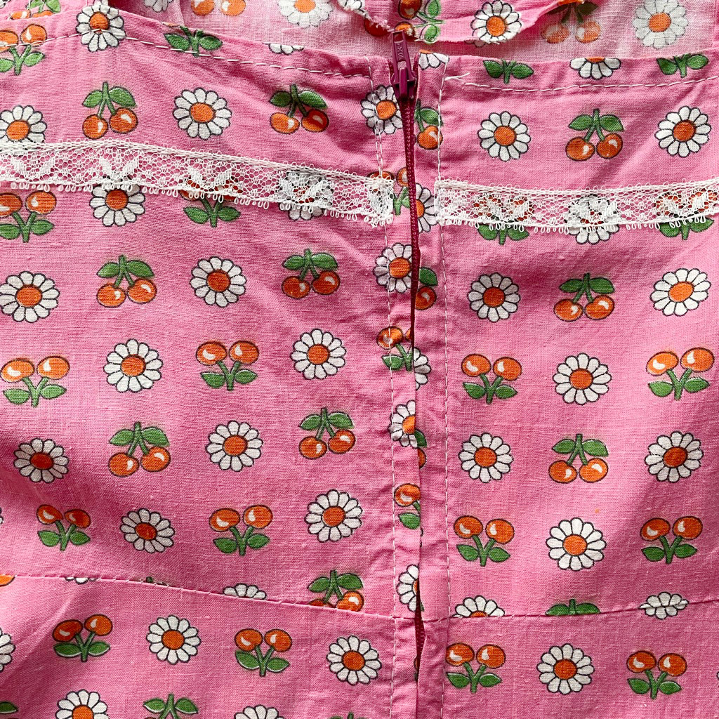 Robe tablier fleurs coton 70s vintage années 70 rose en coton fleuri taille S Elephant Paris Vintage