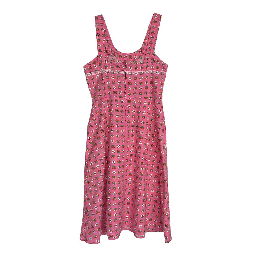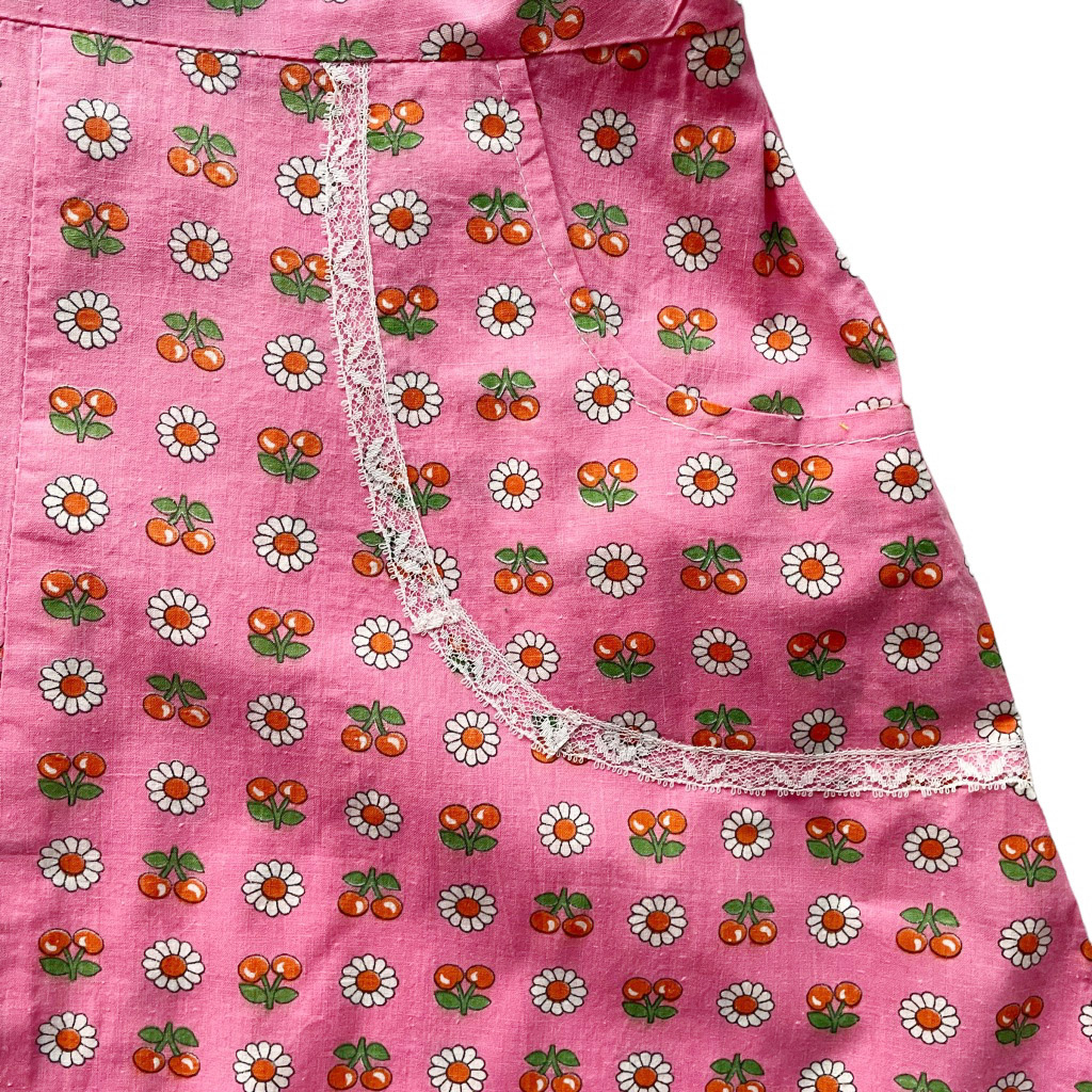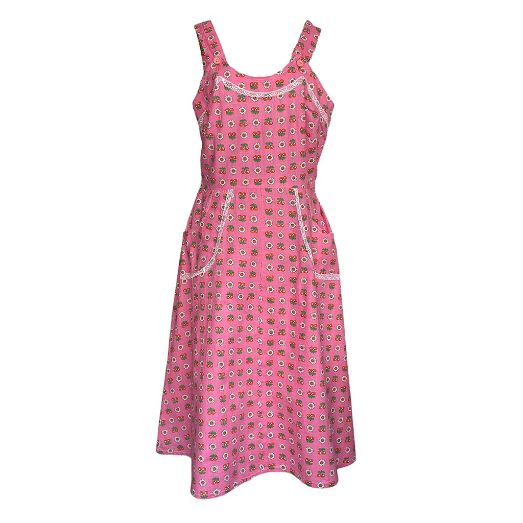 Robe tablier fleurs coton 70s vintage années 70 rose en coton fleuri taille S Elephant Paris Vintage