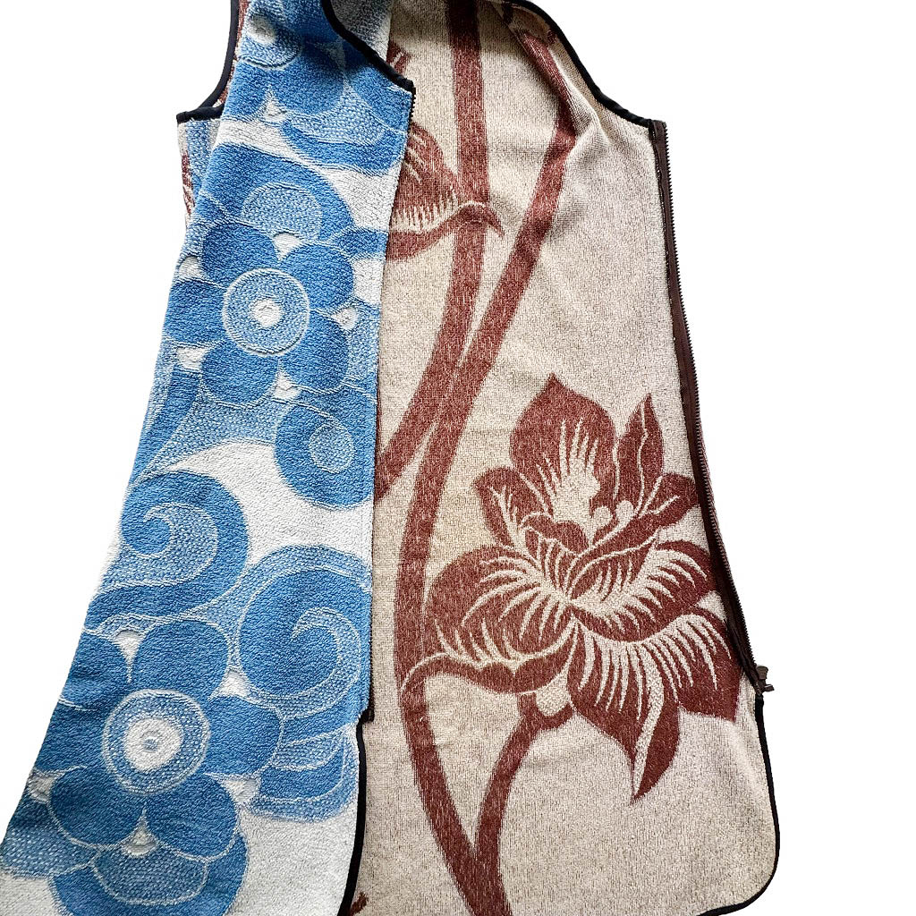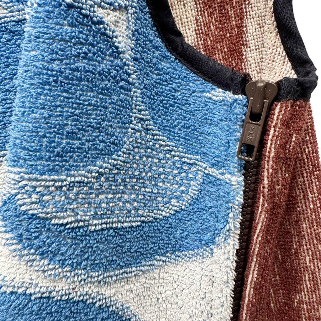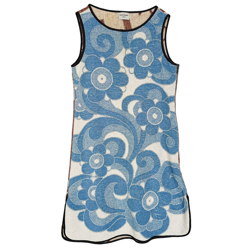 Robe trapèze éponge bleu brun Elephant Paris Design Réalisé avec des matériaux anciens, Pièce unique Made in France, Taille M
