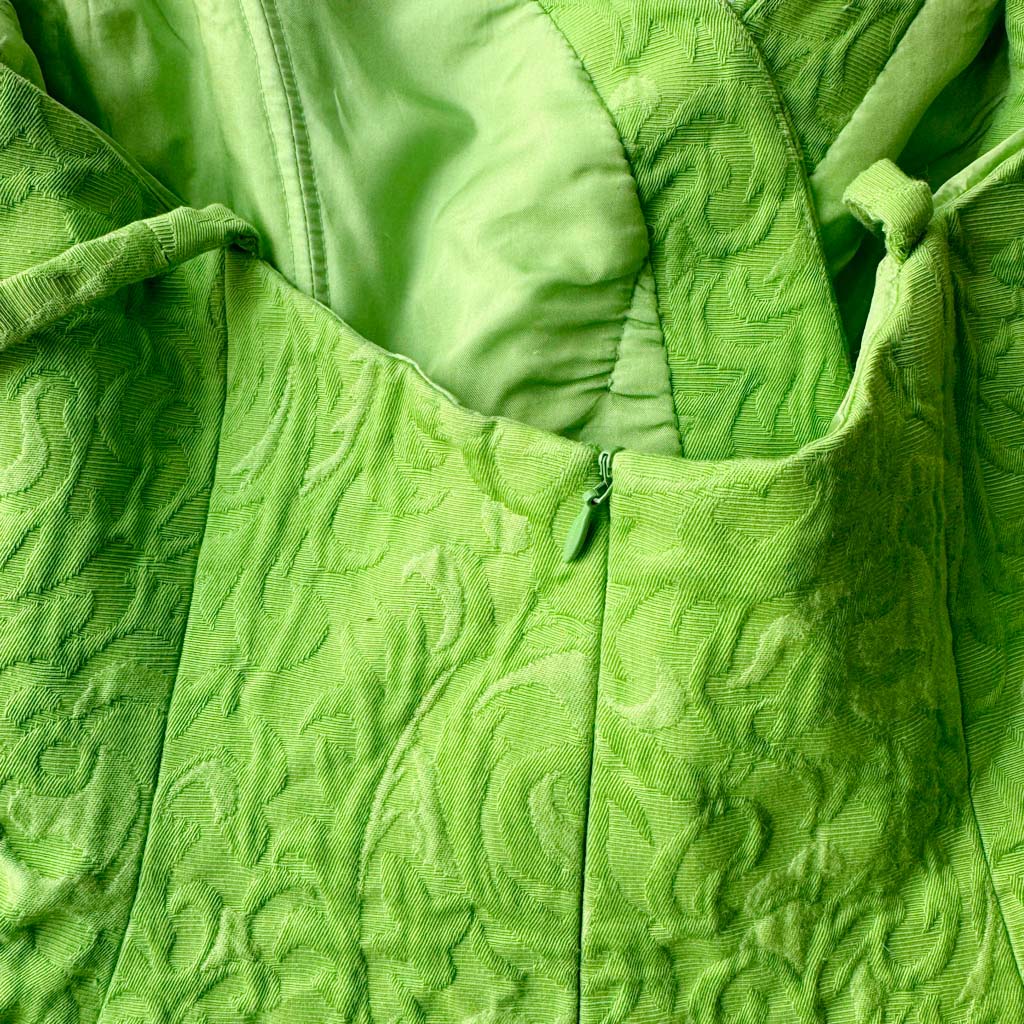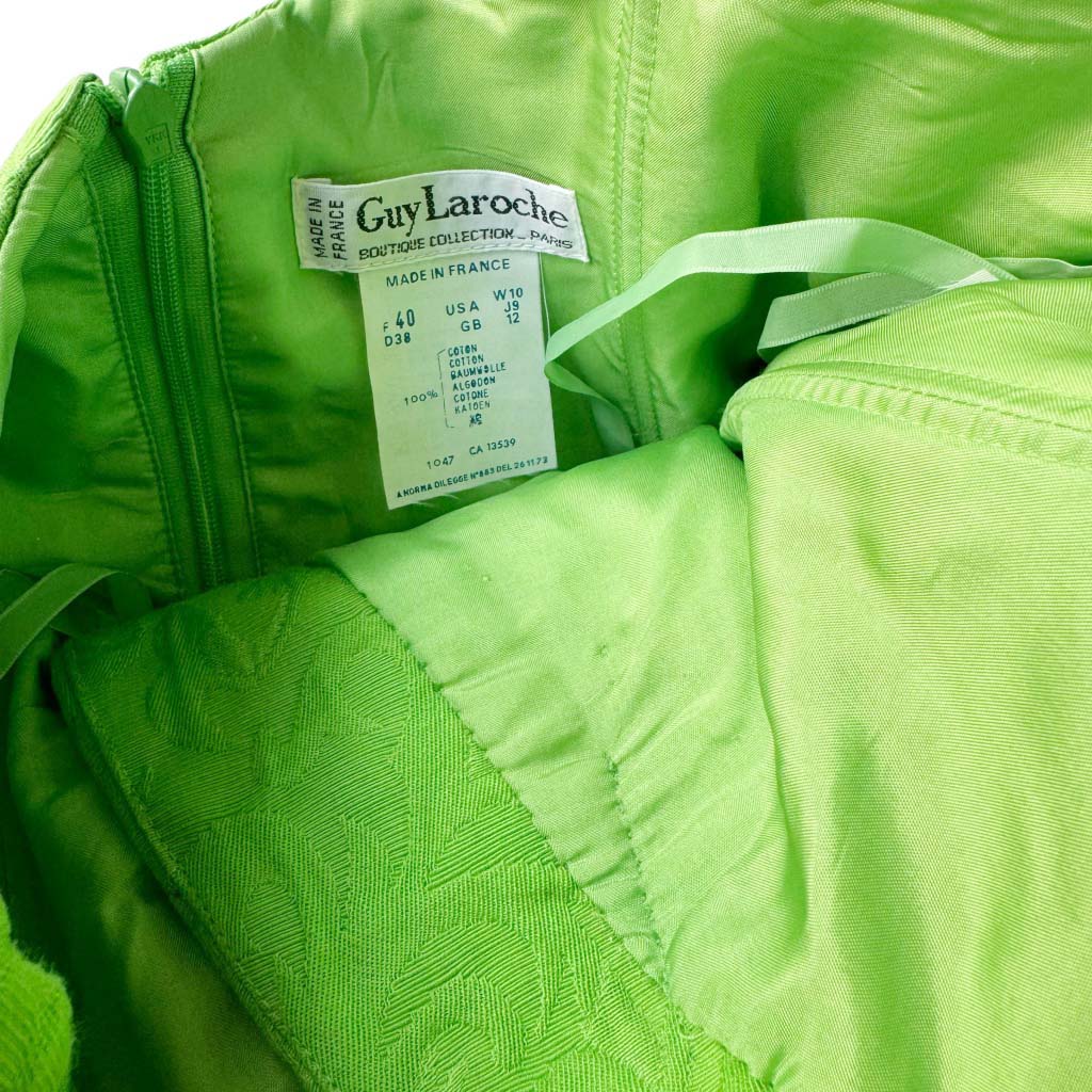 Robe verte pomme Guy Laroche Elephant Paris Vintage Mini robe bustier portefeuille à bretelles en piqué de coton,100% coton épais, doublure acétate et rayon, fabriquée en France Taille globale 36/S, une petite marque légère à signaler, sur le devant, voir photos
