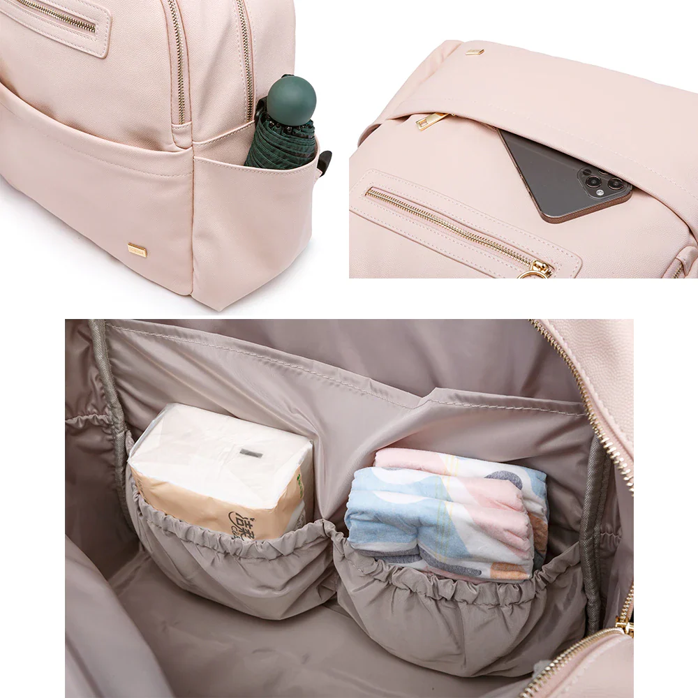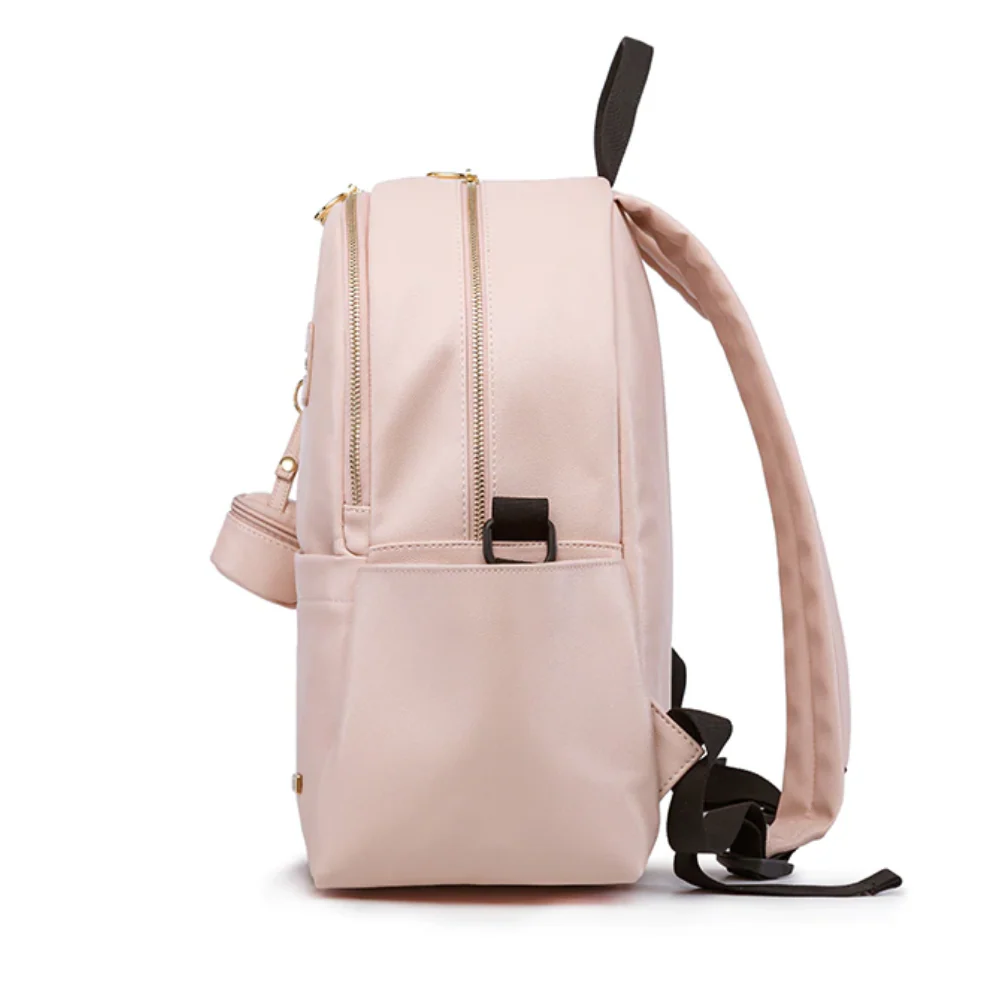 Les + produit : – Cuir vegan 100% – Design élégant – 9 compartiments – 2 anses réglables – 2 attaches poussette – Tissu imperméable – Pochette à tétine Le sac à langer à dos Cuir végan rose est un compagnon idéal pour les jeunes mamans. Ce sac à langer très fonctionnel est doté de nombreux rangements pour faciliter le quotidien des parents. Il propose une esthétique élégante et est confectionné avec un cuir 100% végan. Il est ultra pratique et confortable grâce à ses anses poignée et épaule réglables. Il est également équipé d’un tissu imperméable et d’une pochette à tétine. Ce sac à langer à dos est le compagnon parfait pour accompagner les jeunes mamans dans leurs déplacements.