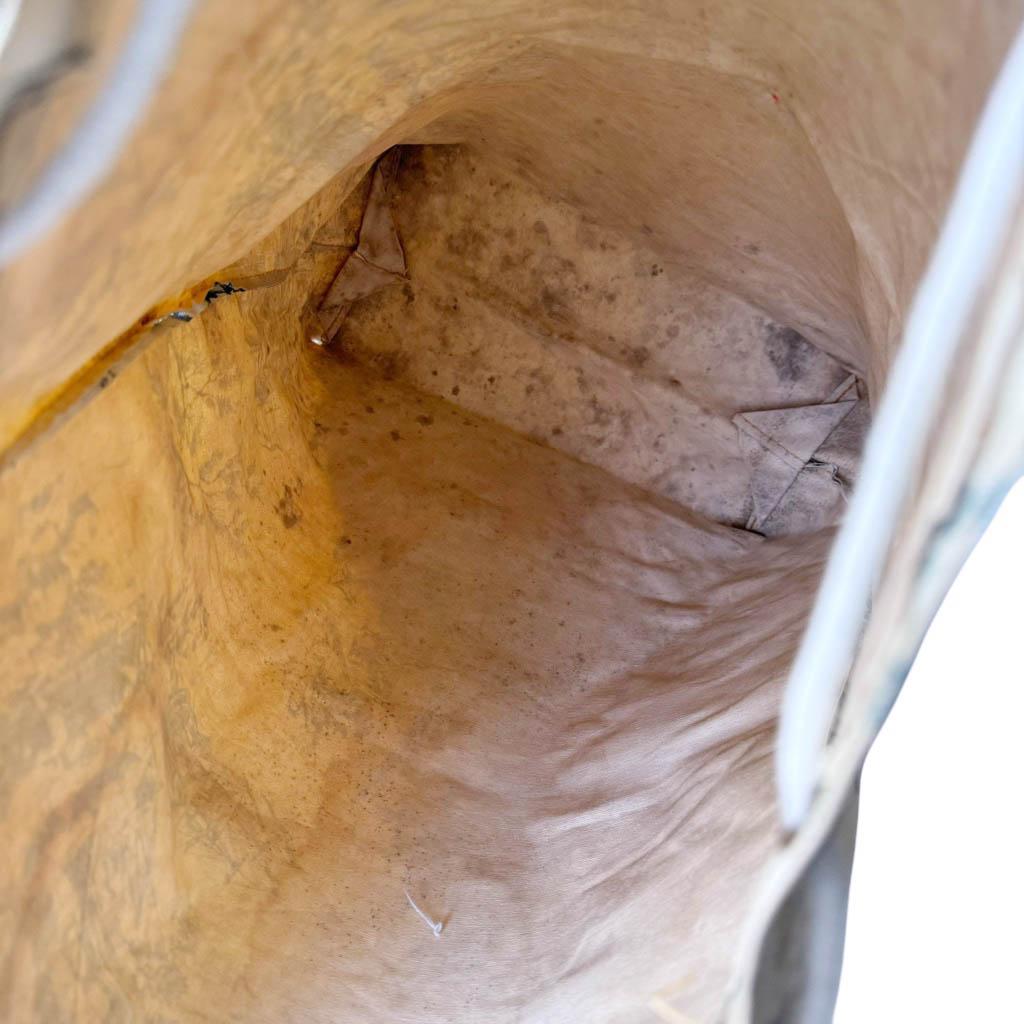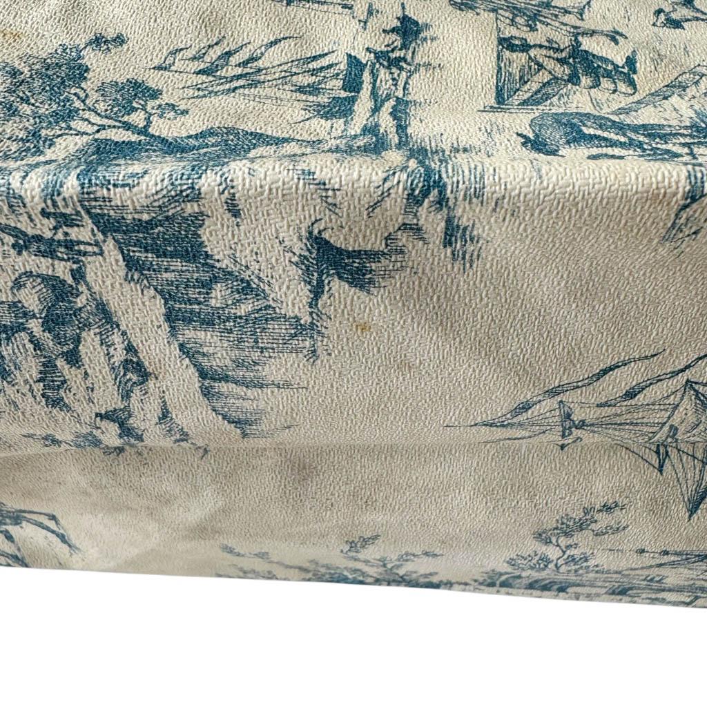 Sac de linge vinyl de Jouy Elephant Paris Vintage Hauteur 49cm, Largeur 42cm et 30cm en bas du sac, Profondeur de 16/30cm, vinyl souple et semi-épais, fermeture par un cordon en coton, un petit trou (voir dernière photo) à signaler, intérieur un peu jauni, bon état d’usage