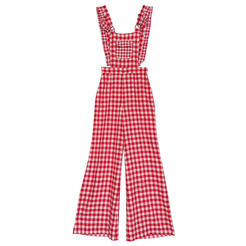 Salopette petit vichy rouge