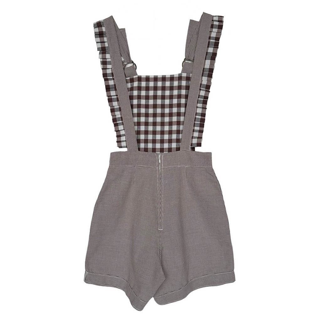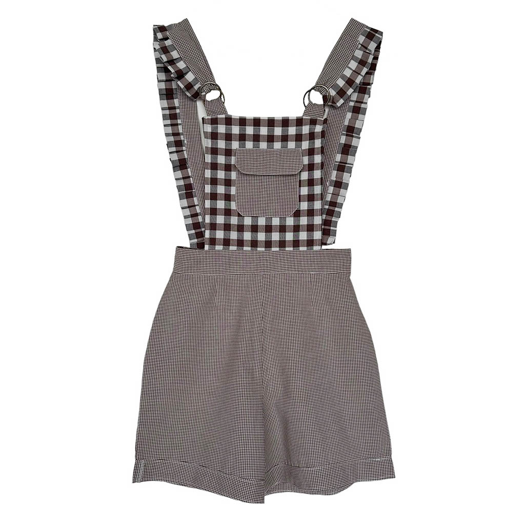 Salopette short vichy beige pastel