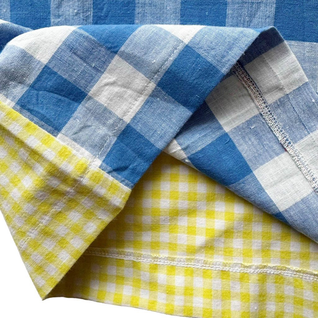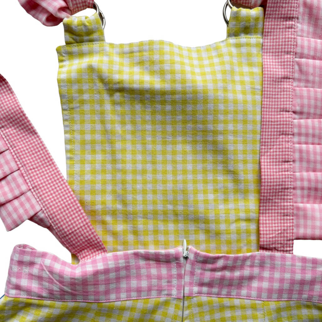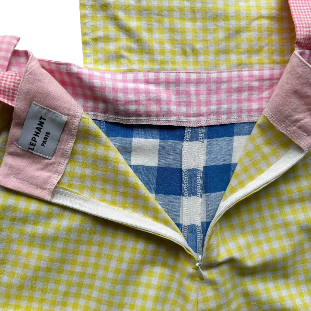 Salopette vichy bleue rose Elephant Paris Design Upcycling réalisé avec des matériaux anciens coton vichy années 70, Pièce unique Made in France Taille haute 34cm, Hanches 46cm, Longueur entrejambes depuis la taille 32cm, Longueur jambe depuis la taille 96cm, Taille 36, S
