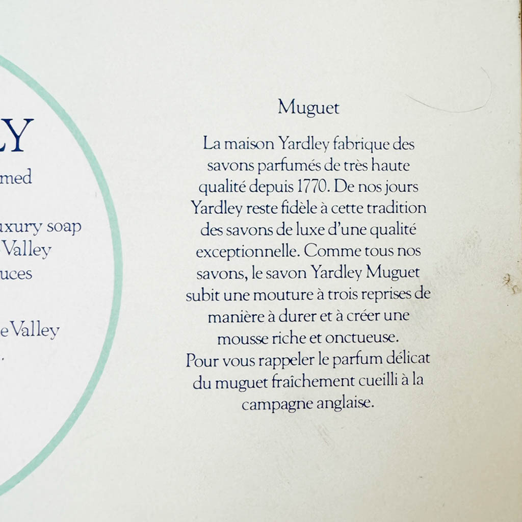Savons Lily of the Valley Yardley Elephant Paris Vintage trois jolis savons dégageant agréablement une odeur de muguet soutenue et printanière