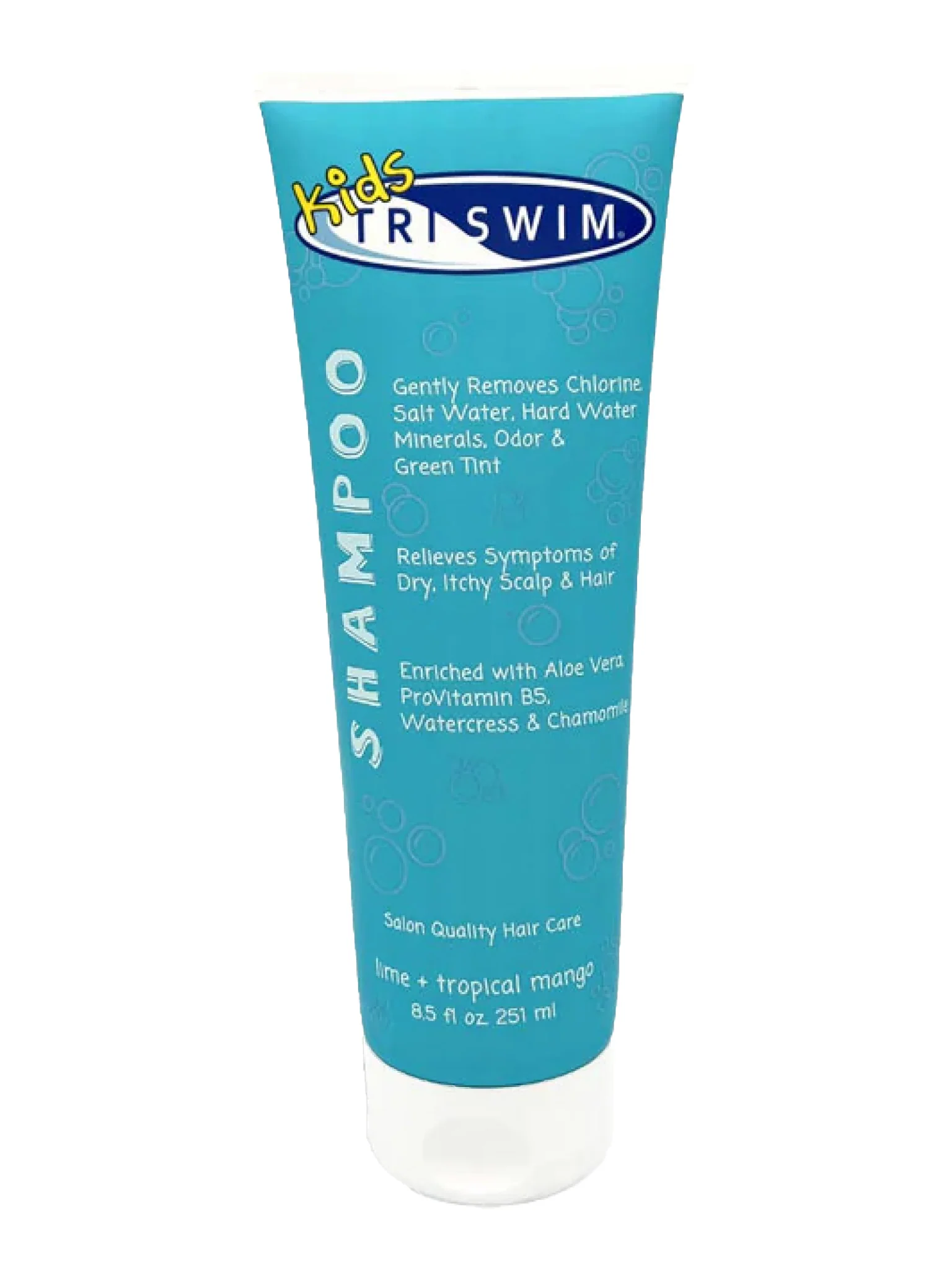 Les petits baigneurs et leurs parents peuvent dormir tranquilles : la menace du cheveu indomptable, abîmé ou pire, tirant sur le vert est écartée grâce à l’utilisation de ce shampoing qui tient tête aux séances de natation fréquentes à la piscine. Spécialement formulée pour les petits nageurs, cette composition neutralise et élimine le chlore, le brome, l’eau salée, les minéraux de l’eau dure (cuivre) et l’odeur dans vos cheveux. En plus d’extraire tous les produits chimiques gênants, cette formule agit de façon à hydrater le cheveu et à restaurer sa santé en l’entourant d’extraits de plantes et de vitamines énergétiques, comme l’aloès biologique, les vitamines A et E, et la provitamine B5. Les âmes sensibles seront heureuses d’apprendre que ce shampoing ne contient ni parabènes ni gluten, et qu’il n’a pas été testé sur des animaux. Légèrement parfumé au tilleul et à la mangue, on peut l’utiliser chaque jour sans danger. Volume : 250 ml/8,5 oz.