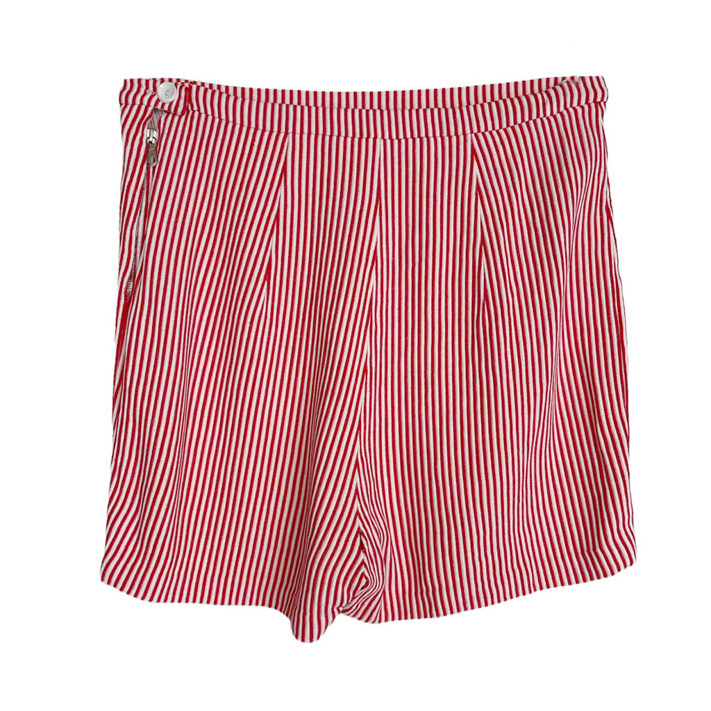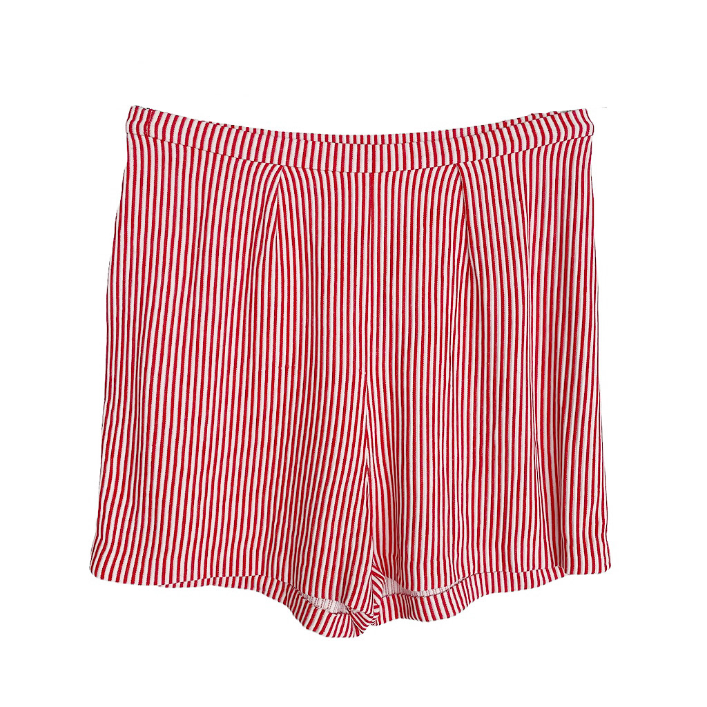 Short vintage en coton à rayures rouges des années 50, légèrement extensible, zippé sur le côté et fermé par un bouton, taille 38 Elephant Paris Vintage