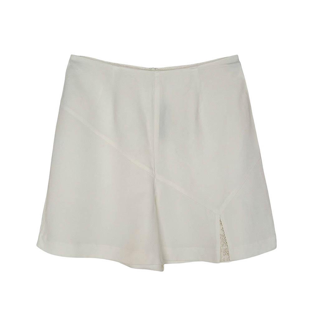 Short Ivoire de Laurence Elephant Paris Vintage Années 80, gabardine de soie, en viscose, soie et dentelle, Mesures à plat : Taille haute 33cm, Longueur entrejambes depuis la taille 27cm, Hanches 47cm, taille globale 36, bon état fermeture dans le dos