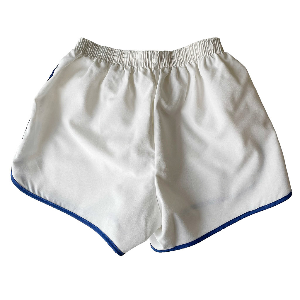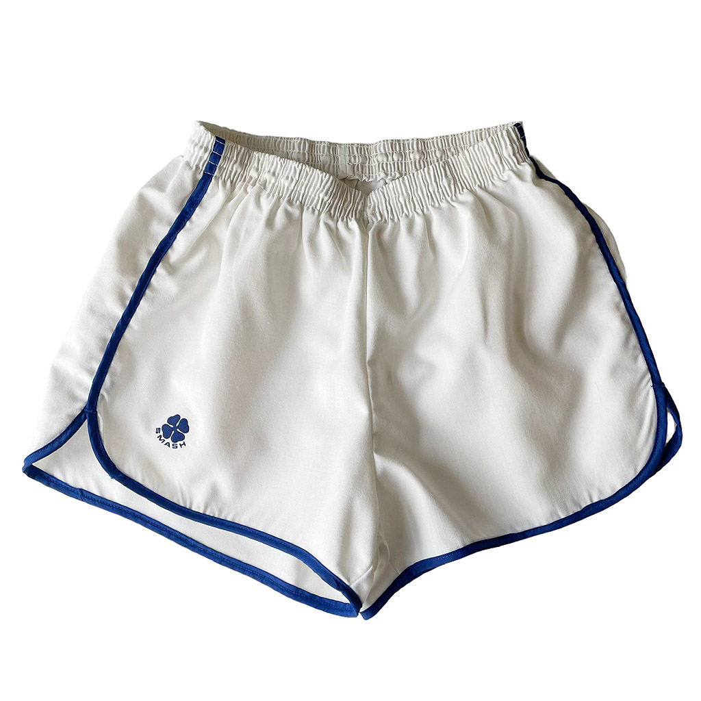 Short SmashMarine blanc coton surligné en satin mat bleu vintage 70 Elephant Paris Vintage Taille 36/38 Mesures à plat : Taille élastique 30/45cm, hanches 47cm, Longueur entrejambes depuis la taille 27cm, Longueur devant 29cm, Longueur dos 35cm,