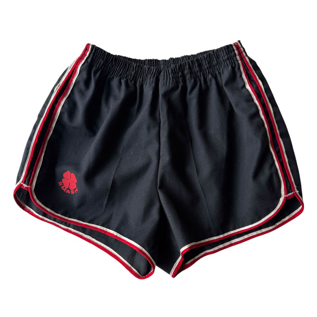 Short sport noir rouge Smash Elephant Paris Vintage des années 1 9 7 0, Mesures prises à plat : Taille élastique : 2 9 / 4 7 c m, Hanches : 5 0 c m, Longueur dos : 3 2 c m, Longueur devant : 2 9 c m, Longueur jambe depuis la fourche : 6 c m, Taille globale : 3 6 / S, Neuf d’époque