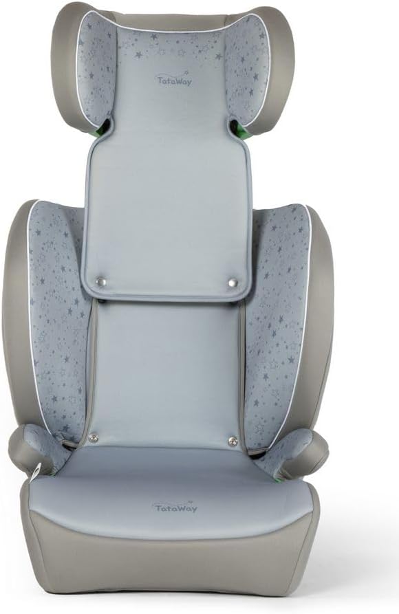 Le siège auto Tataway se distingue par son design ergonomique et ses finitions soignées. Avec son coloris élégant de graphismes étoilés sur fond gris, il s’intègre harmonieusement dans l’intérieur de votre véhicule. Le rembourrage en matériau hypoallergénique offre un confort inégalé, tandis que l’appui-tête réglable permet une adaptation morphologique optimale à la croissance de votre enfant, garantissant ainsi un maintien parfait.