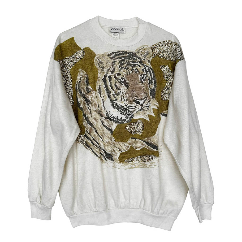 Sweat Shirt Vanderbilt Elephant Paris Vintage Années 80, coton imprimé et sequins, Mesures à plat : Epaules 54cm, Poitrine 59cm, Longueur dos 64cm, Taille 40/ M