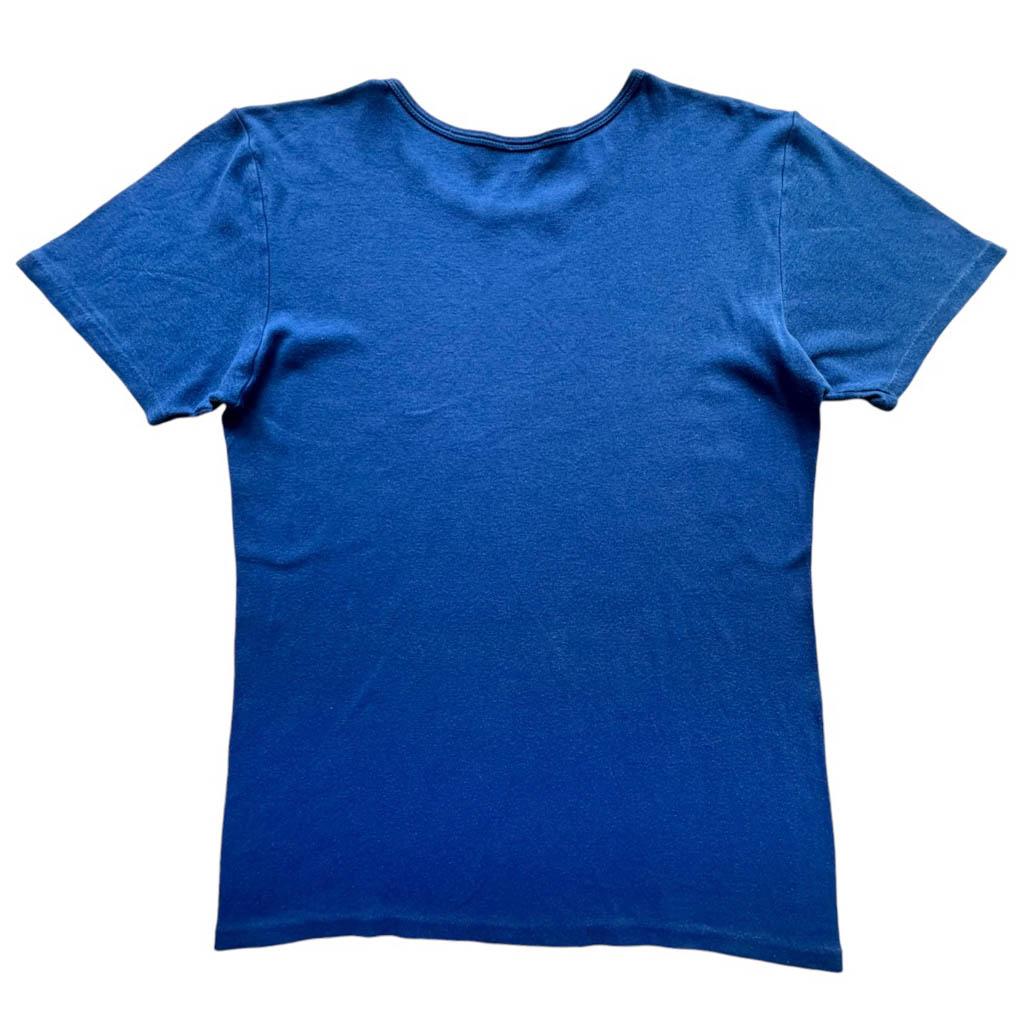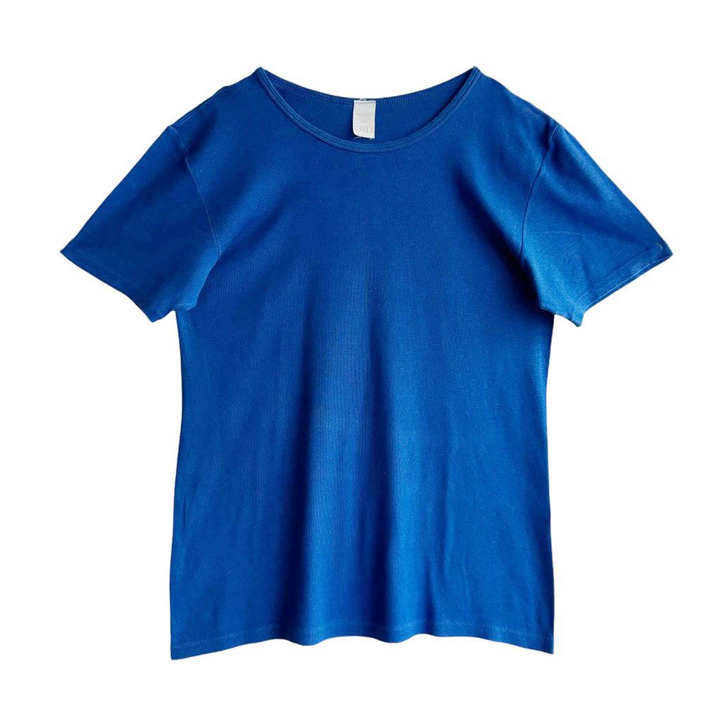 Tee-Shirt coton bleu Orly Elephant Paris Vintage Années 70, pur coton en maille jersey extensible, tee-shirt sport, simple ou classique, joli bleu intense, underwear ou parfait pour l’été avec un jean blanc ou bleu de travail Mesures à plat : Epaules 41/57cm, Poitrine 48/72cm, Longueur dos 63cm, Taille M