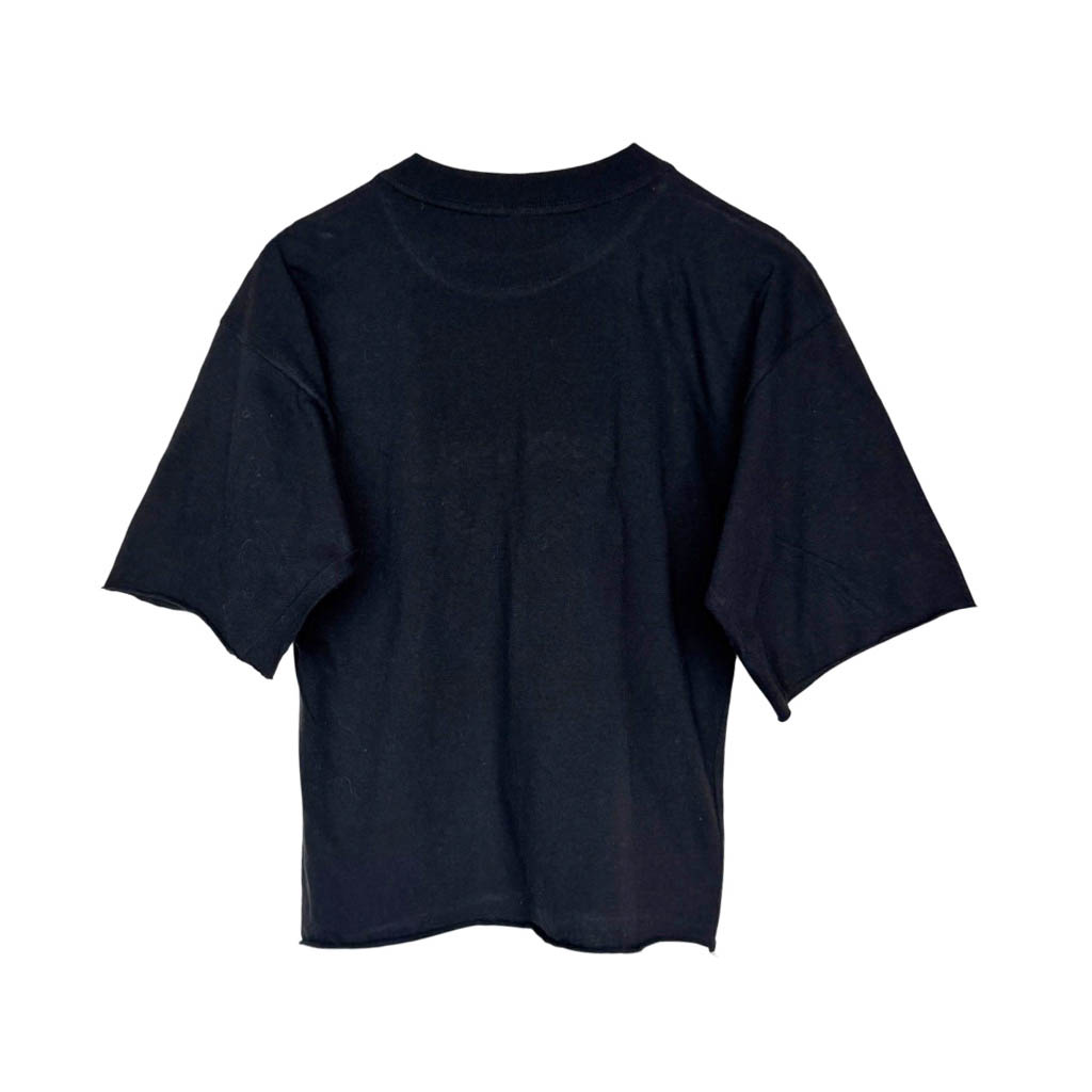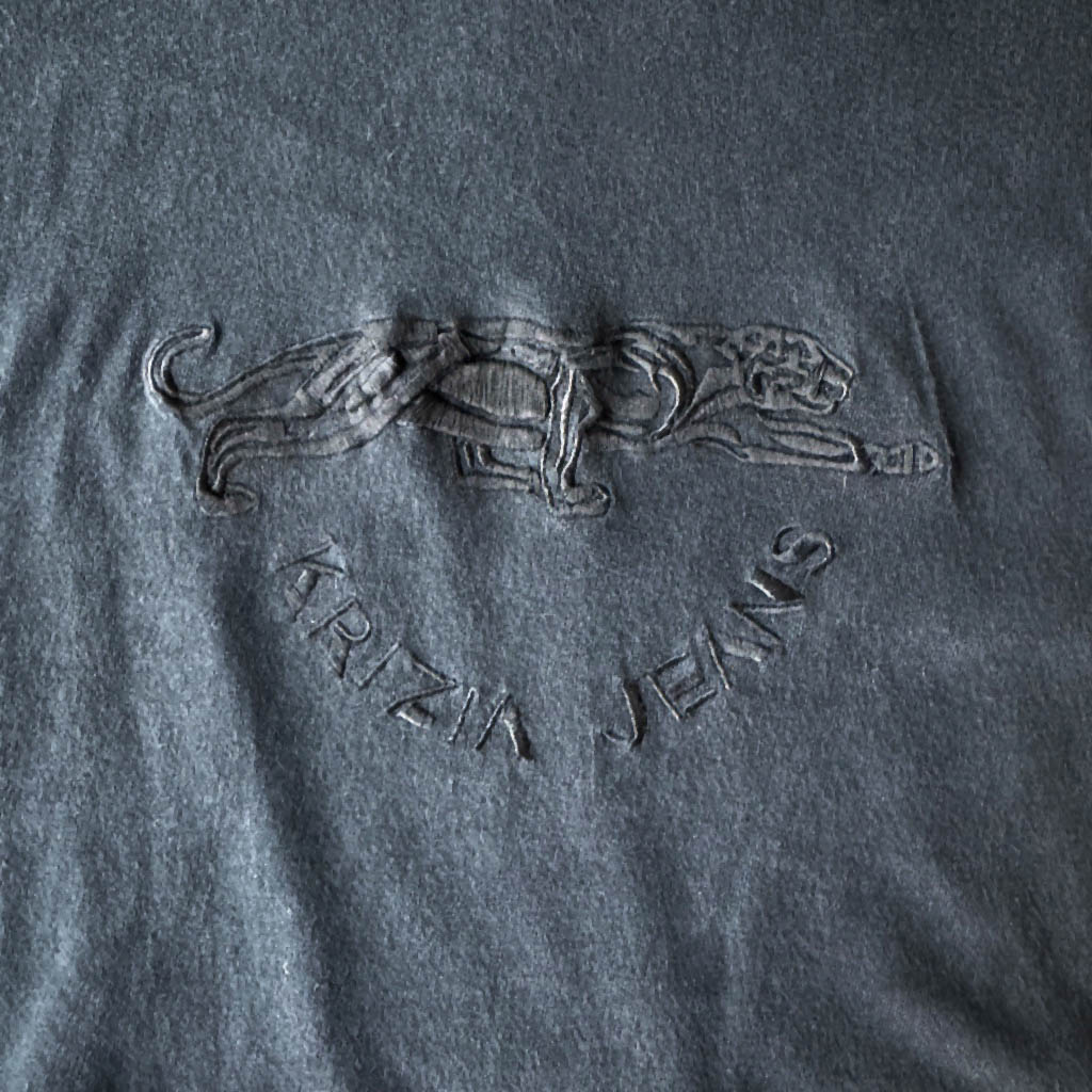 Tee-shirt Krizia Jeans Elephant Paris vintage Tee-shirt noir brodé, en jersey de coton plutôt fin et extensible article vintage datant de la fin des années 1 9 9 0 début 2 0 0 0, au col arrondi, matière agréable et très souple, bon état général, le tee-shirt a été coupé “à la maison” pour en faire un semi-crop Mesures prises à plat : Epaules : 4 2 c m, Poitrine : 6 6 c m, Longueur dos : 5 5 c m, Taille globale : S / M – 3 6 / 3 8 / 4 0