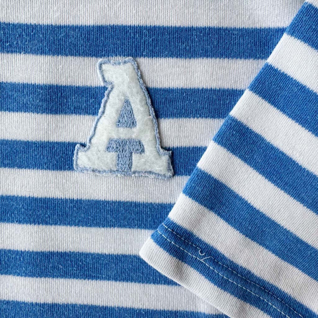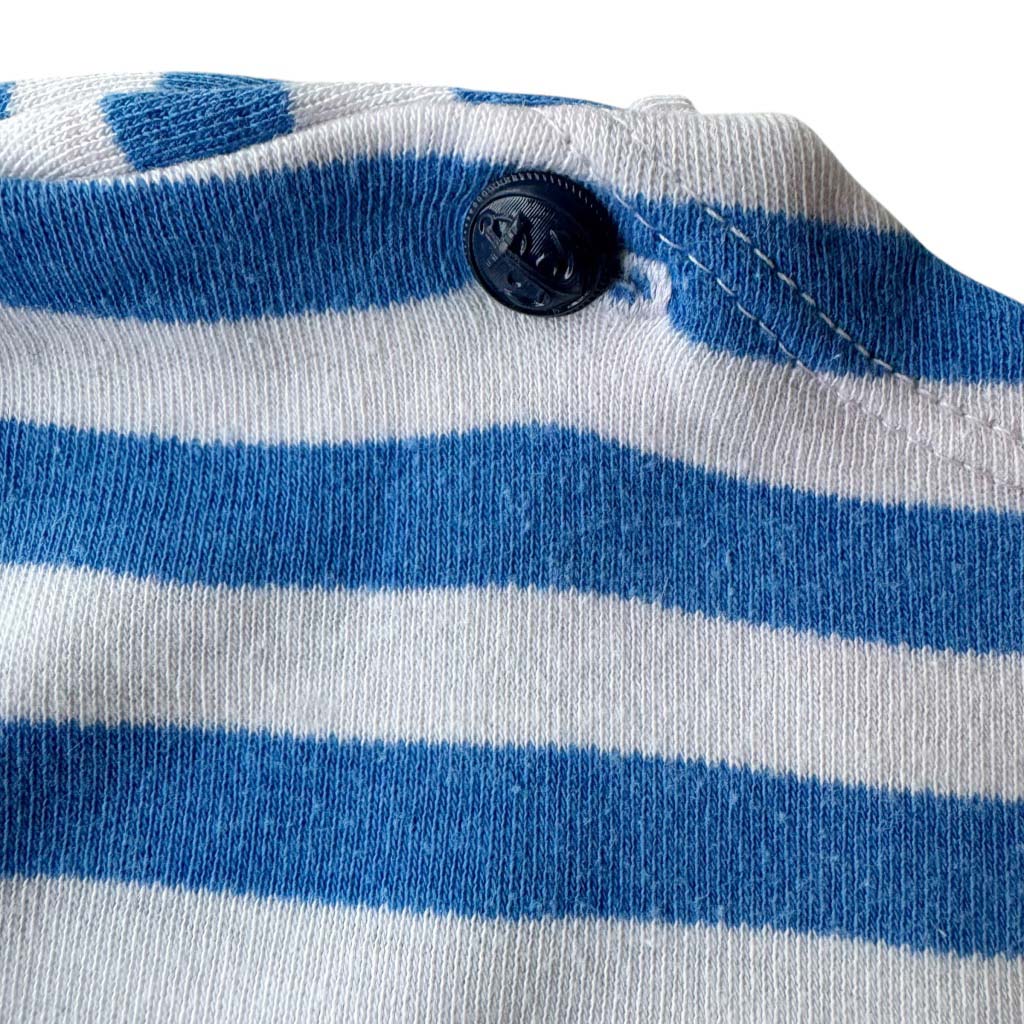 Tee shirt marinière 2 ans Elephant Paris Vintage Tee-shirt rayé vintage des années 80, jersey de coton extensible et doux, boutonnage ancres marines sur les épaules, Ecusson A sur la poitrine, manches longues Mesures à plat : Epaules 35 / 40 cm, Poitrine 53 cm, Taille 36 /46 cm, Longueur dos 29 cm