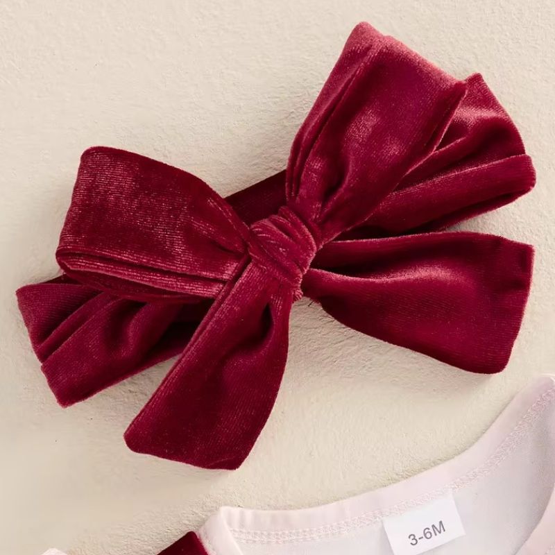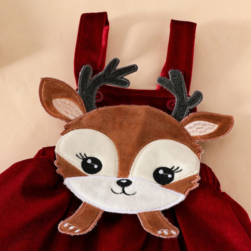 Pour célébrer le premier Noël de votre petite princesse, cet ensemble de Noël 3 pièces est un choix parfait, alliant douceur et magie. Composé d’un body manches longues orné d’adorables motifs faon, d’une robe en velours rouge éclatant avec un faon brodé en relief avec bretelles , ainsi que d’un bandeau en velours assorti, cet ensemble habille bébé avec élégance et confort. Offrez lui une allure féérique et un souvenir inoubliable de ce premier Noël en famille, où chaque instant devient un véritable conte de fées.