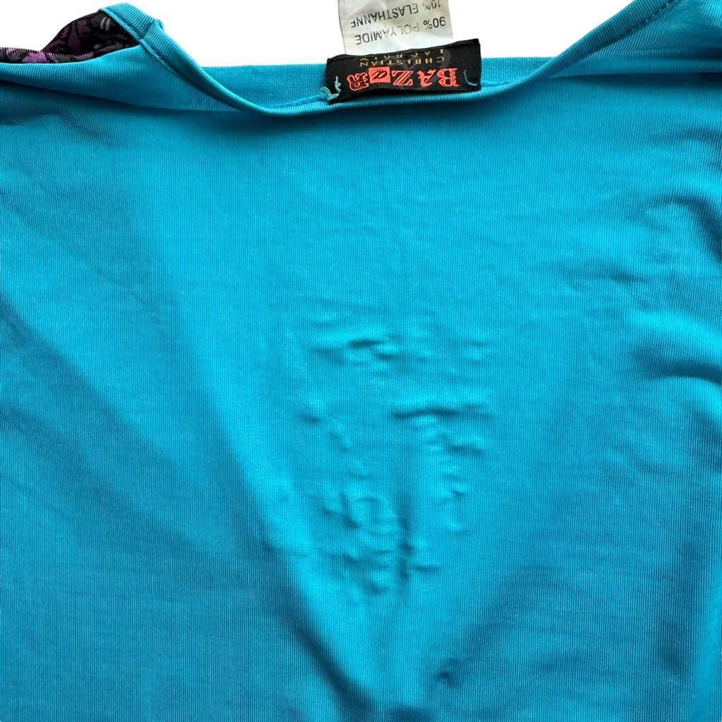 Top Bazar Christian Lacroix en lycra fin Elephant Paris vintage Décolleté en v plongeant, nu petit défaut à signaler sur le haut du dos (voir deux dernières photos) Mesures à plat : Epaules 33/48cm, Poitrine 40/50cm, Taille 33/43cm, Longueur dos 48/58cm, Taille 36/38, M