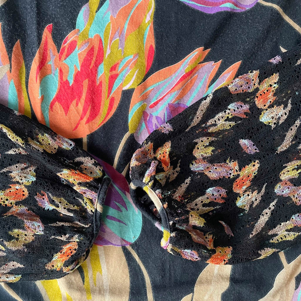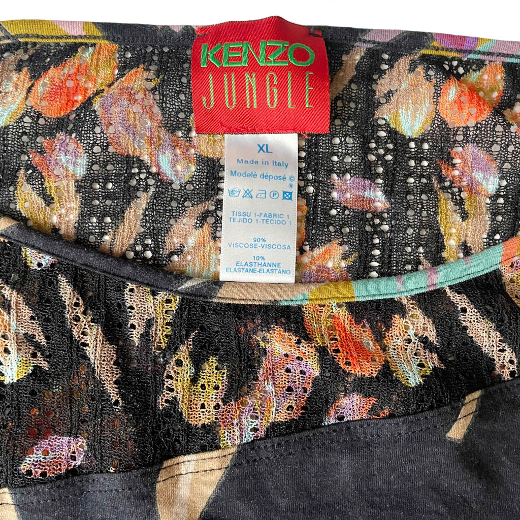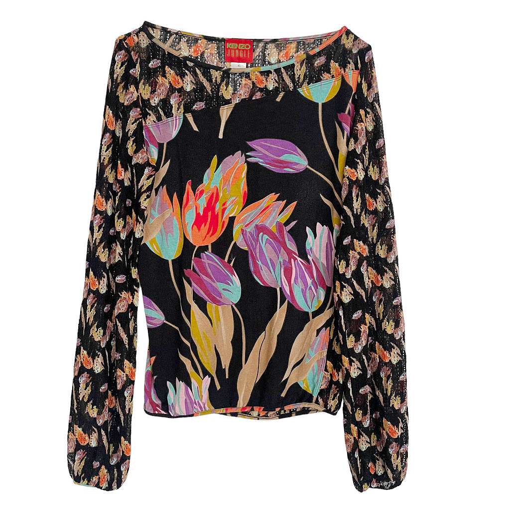 Top fleurs Kenzo Jungle complètement souple et extensible Elephant Paris vintage Mesures à plat : Epaules 39/59cm, Poitrine 48/63cm, Longueur dos 63cm, Taille globale 40