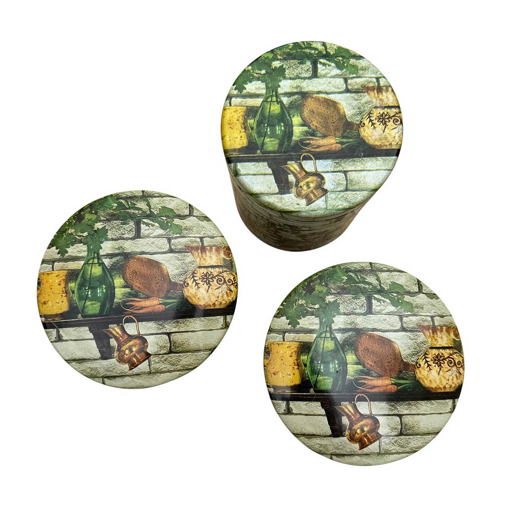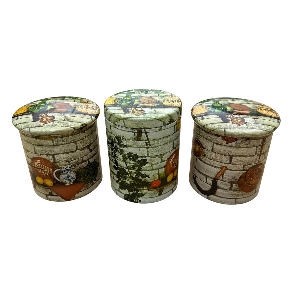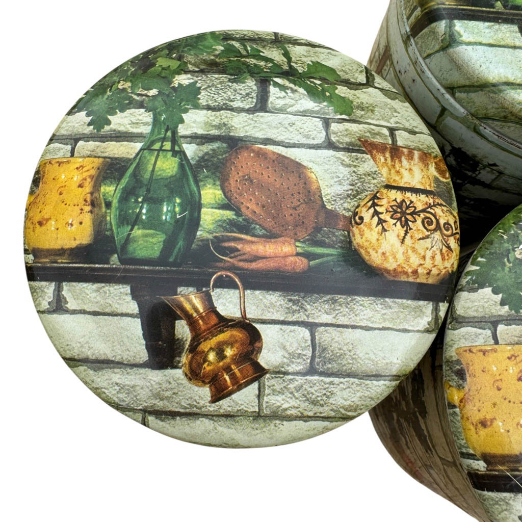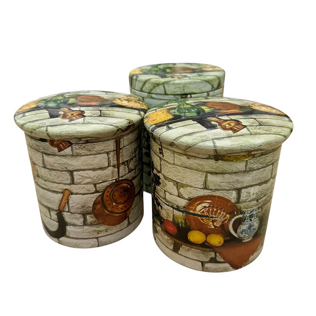 Trois boites métal Massilly France Elephant Paris Vintage Une seule des trois boites est signée Massilly, bon état général malgré quelques légères rayures, voir photos, éléments vintages de rangement datant des années 1 9 7 0 Dimensions : Diamètre : 1 0,5 cm, Hauteur : 1 3,5 cm, Les deux autres avec le même graphisme, Diamètre : 1 0,5 cm, Hauteur : 1 2cm