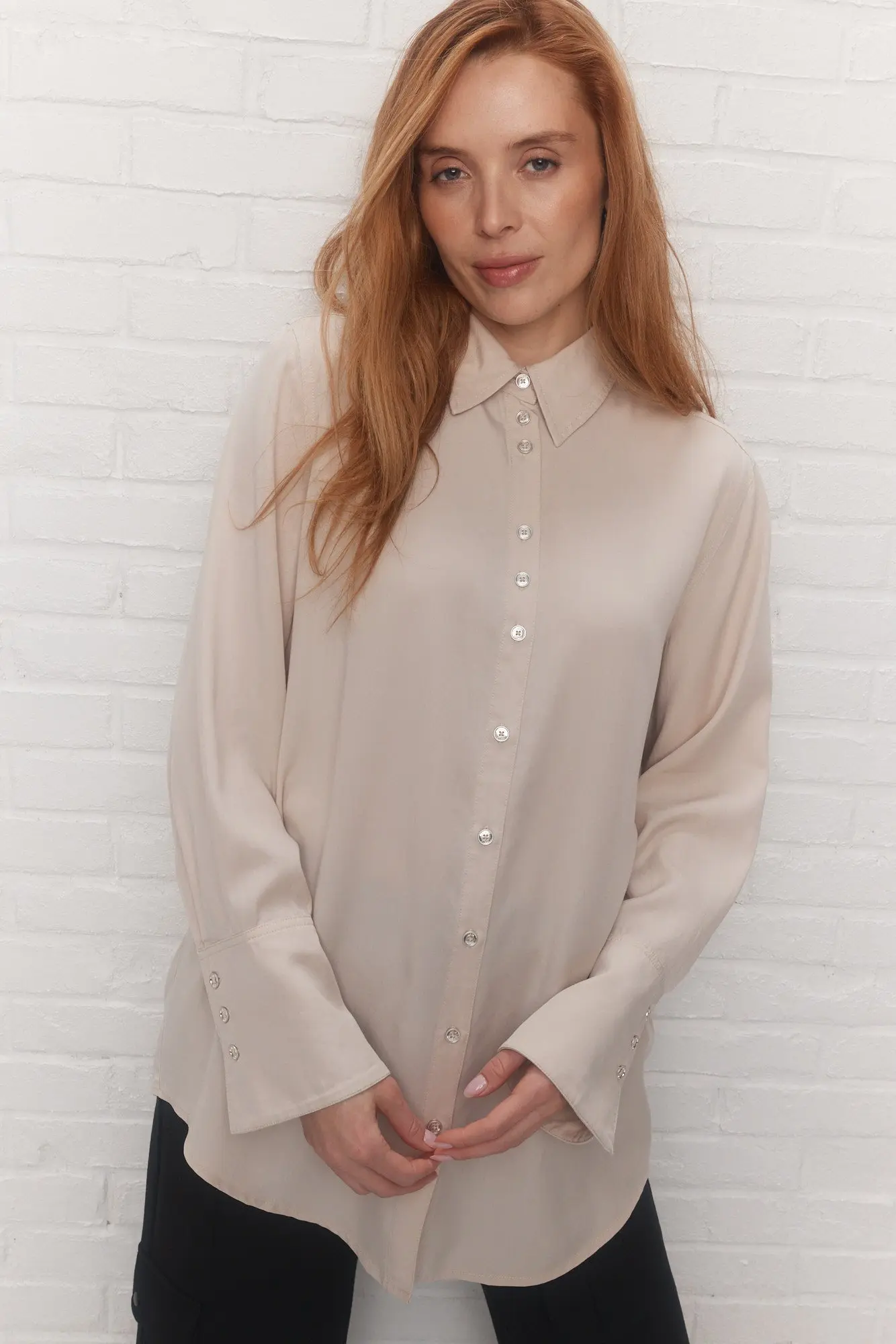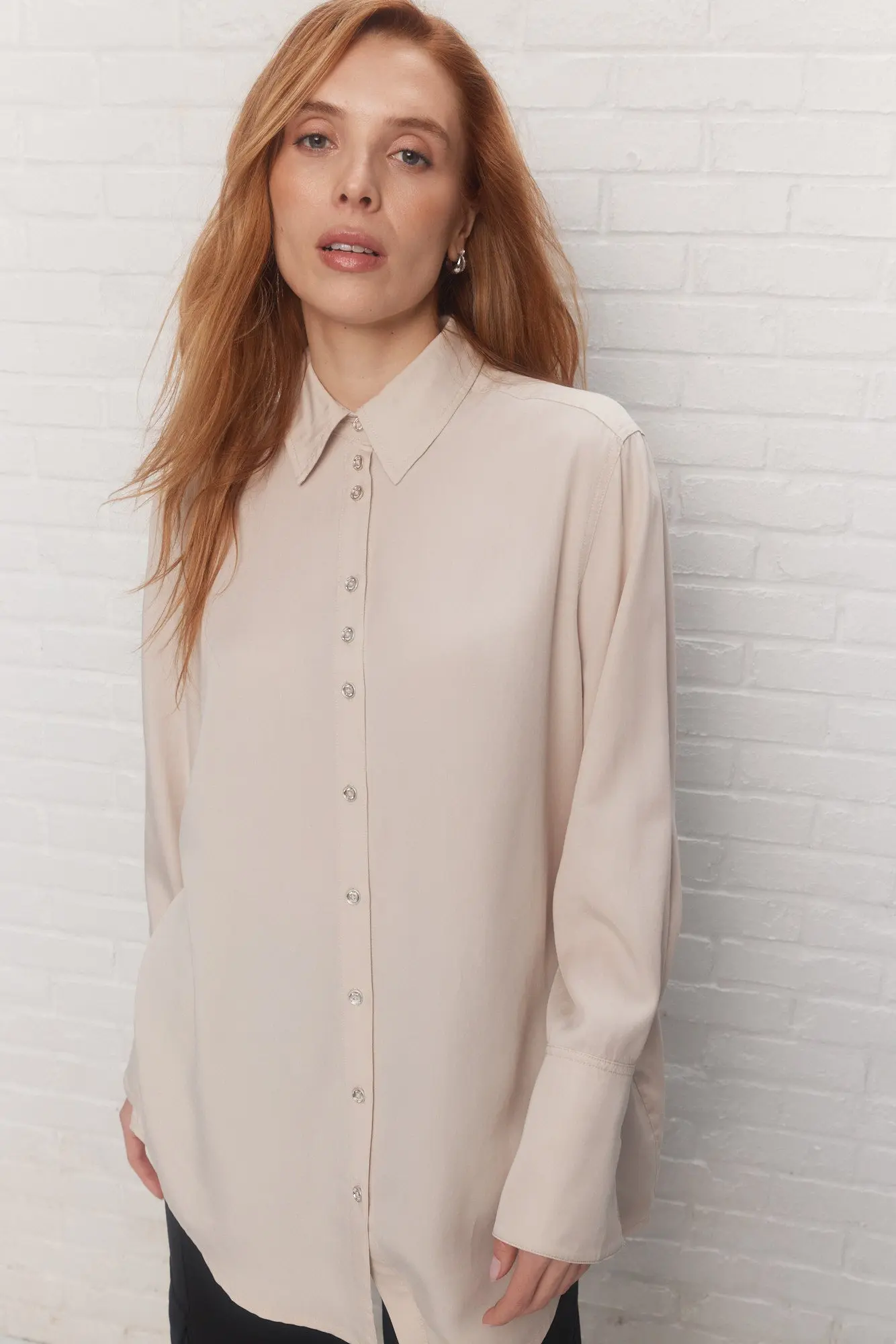 Une pièce coup de cœur est de retour dans une nouvelle teinte : la chemise beige ample Valentine, douce et au luxe discret. Portez-la avec tout; Valentine est un essentiel de la garde-robe et tombe parfaitement sur la silhouette.