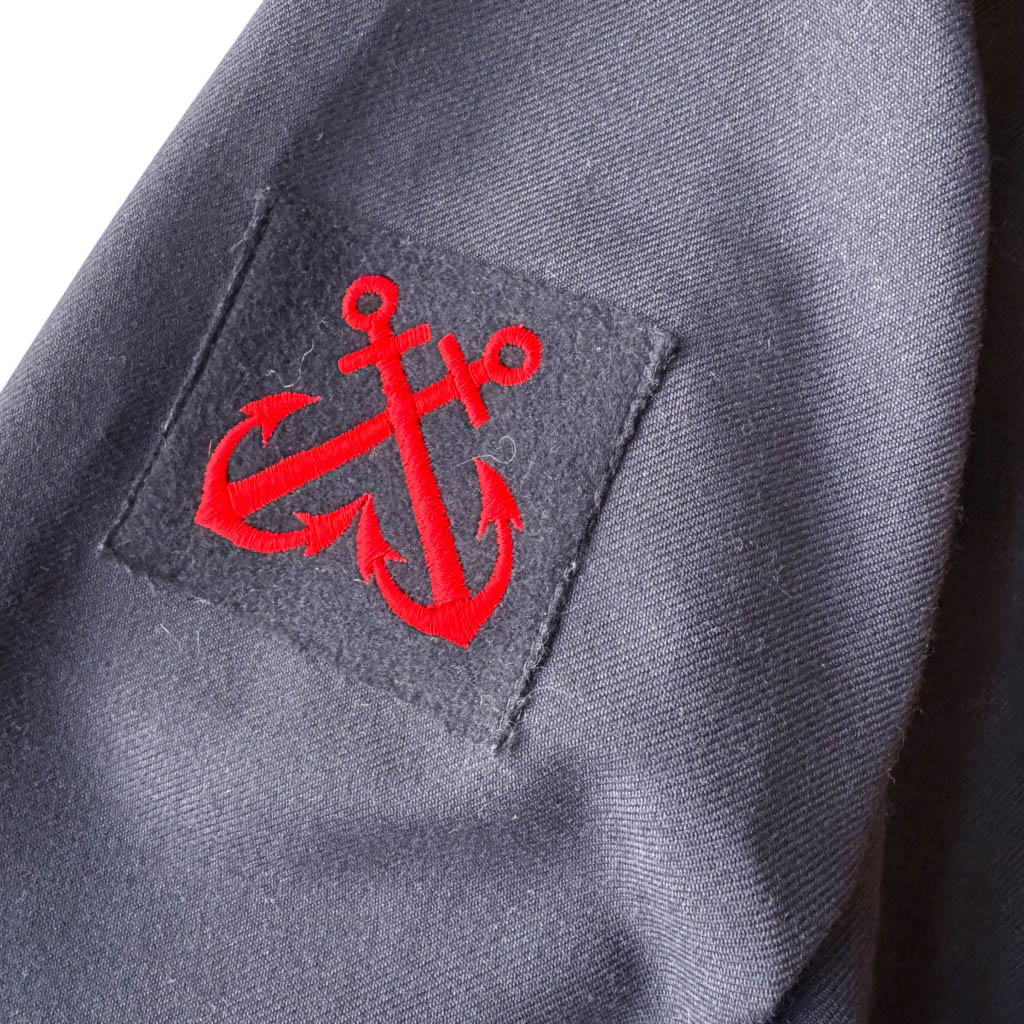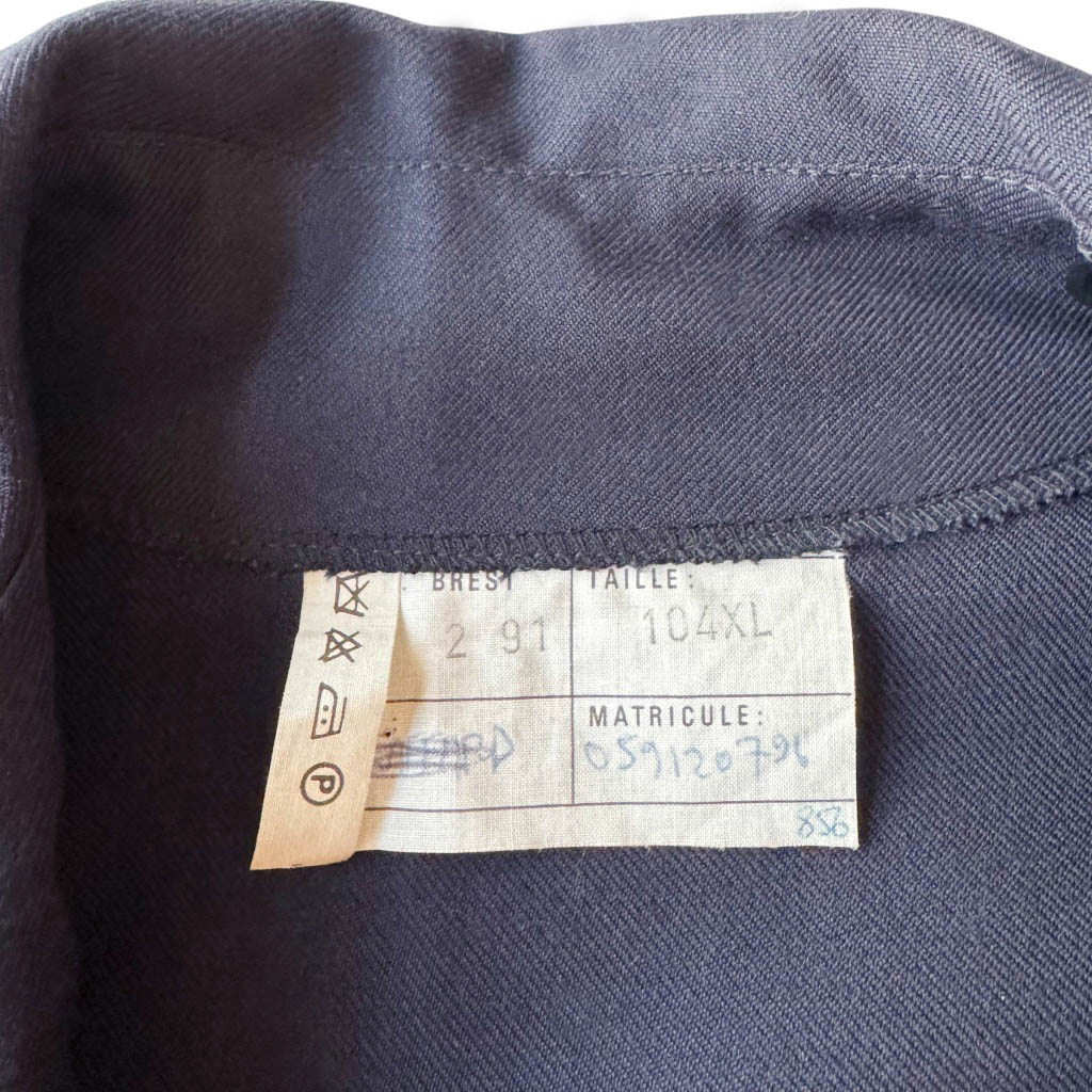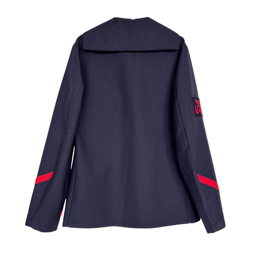 Vareuse Marine drap de laine Elephant Paris Vintage Uniforme de la marine en drap de laine marine, galons et écusson ancre marine rouge, vintage année 91, Mesures prises à plat : Epaules 46cm, Poitrine 58cm, Longueur dos sans le col 75cm, Taille S/M